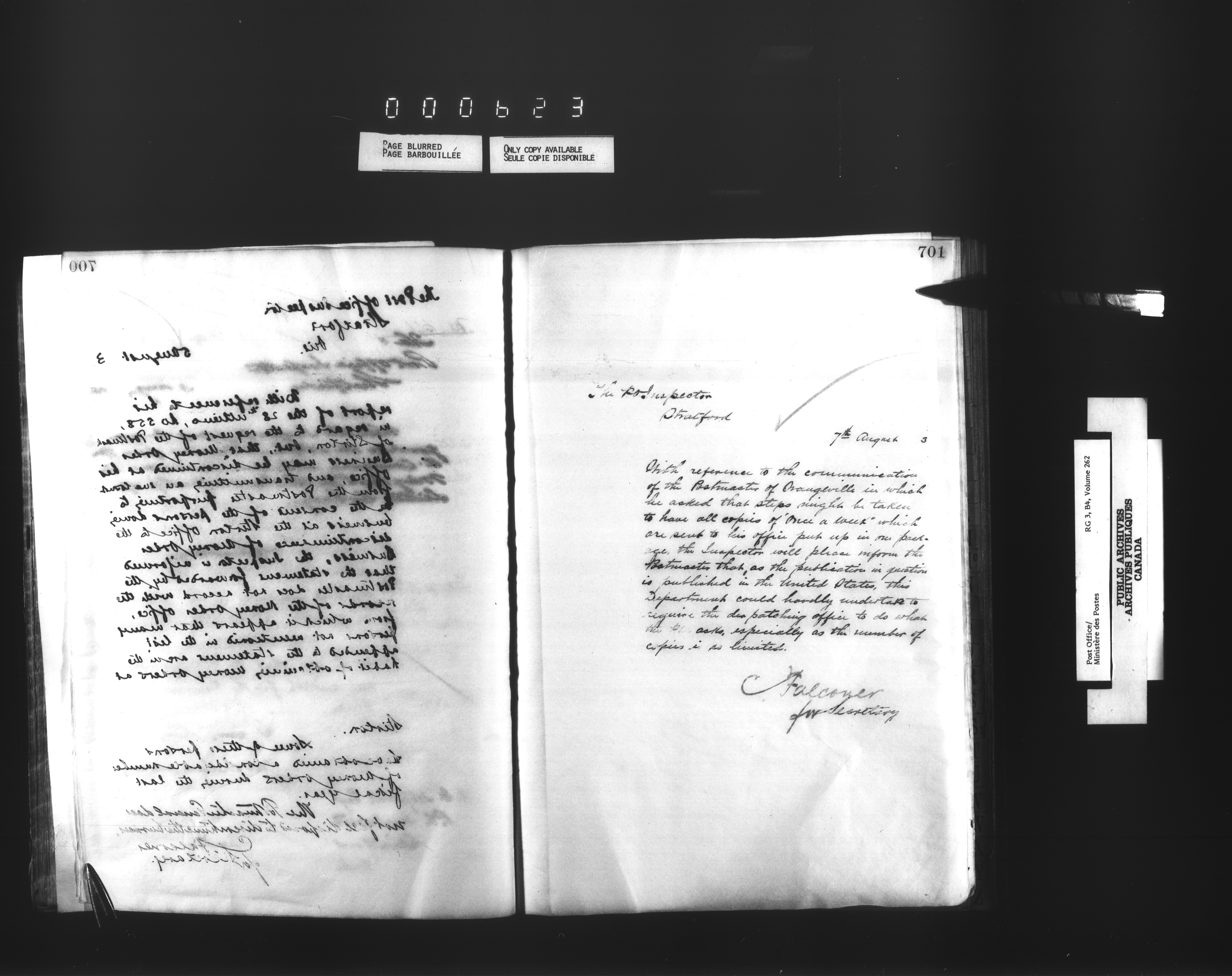 Deputy Postmaster General : correspondence addressed to the Post Office Inspectors, 1851-1902 - 1582