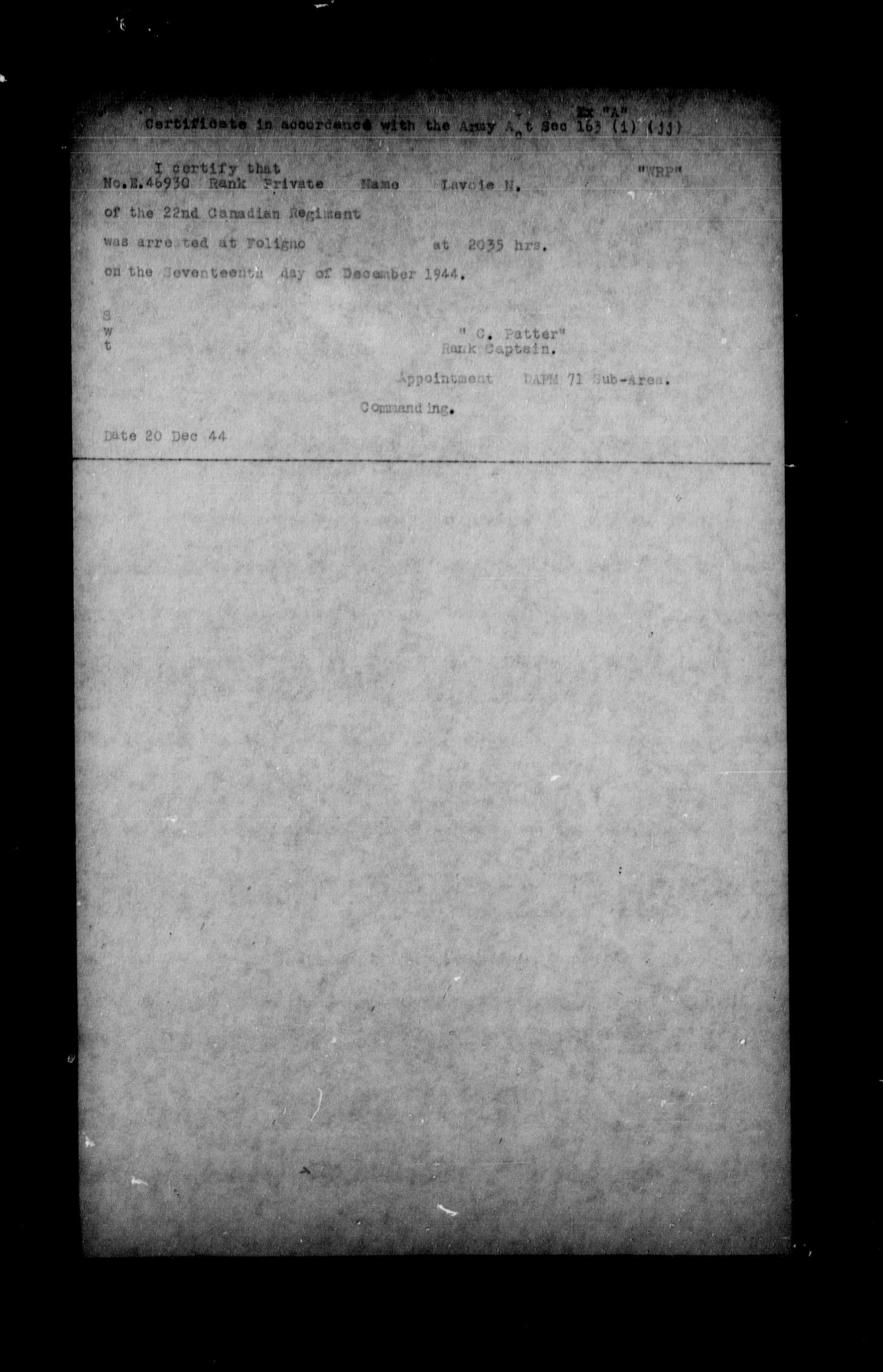 Canadian Army Courts Martial documents (1939-1945) - 15823