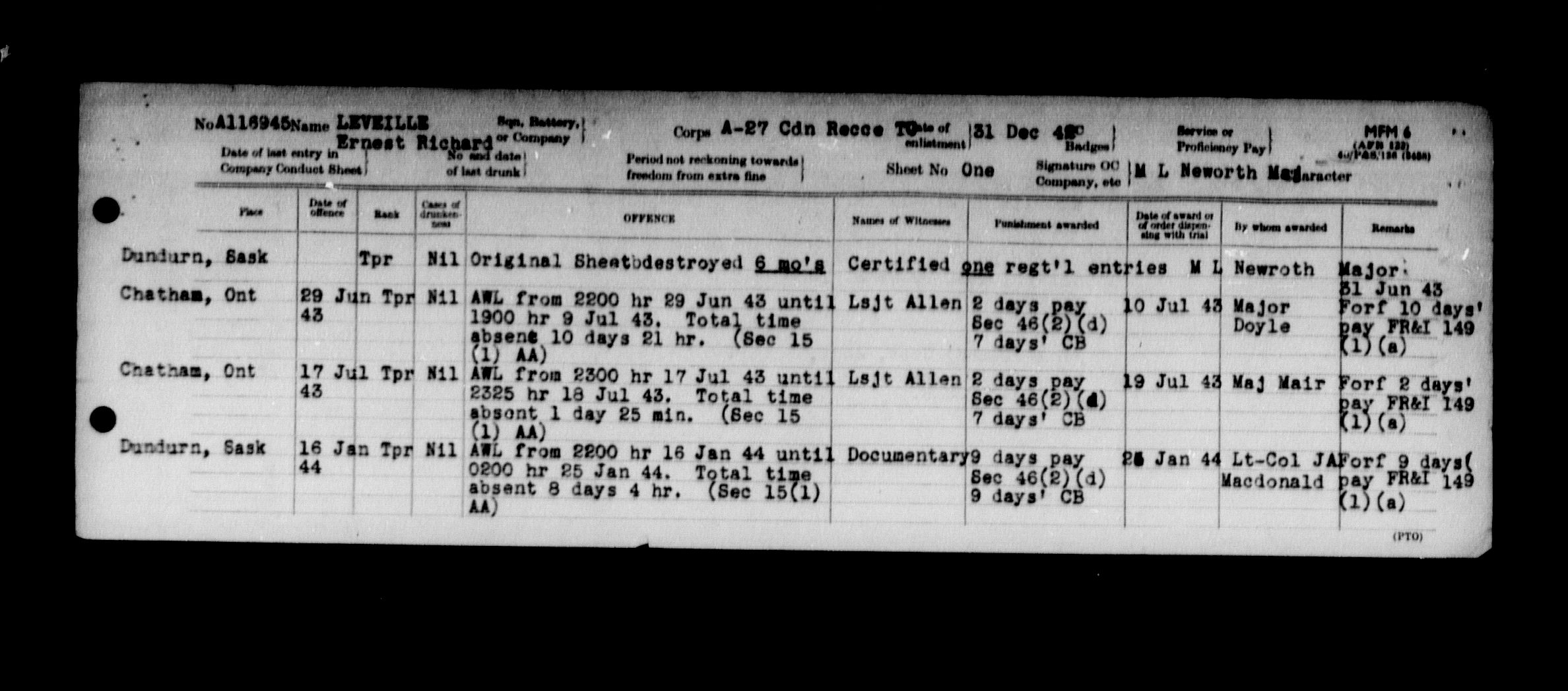 Canadian Army Courts Martial documents (1939-1945) - 15826