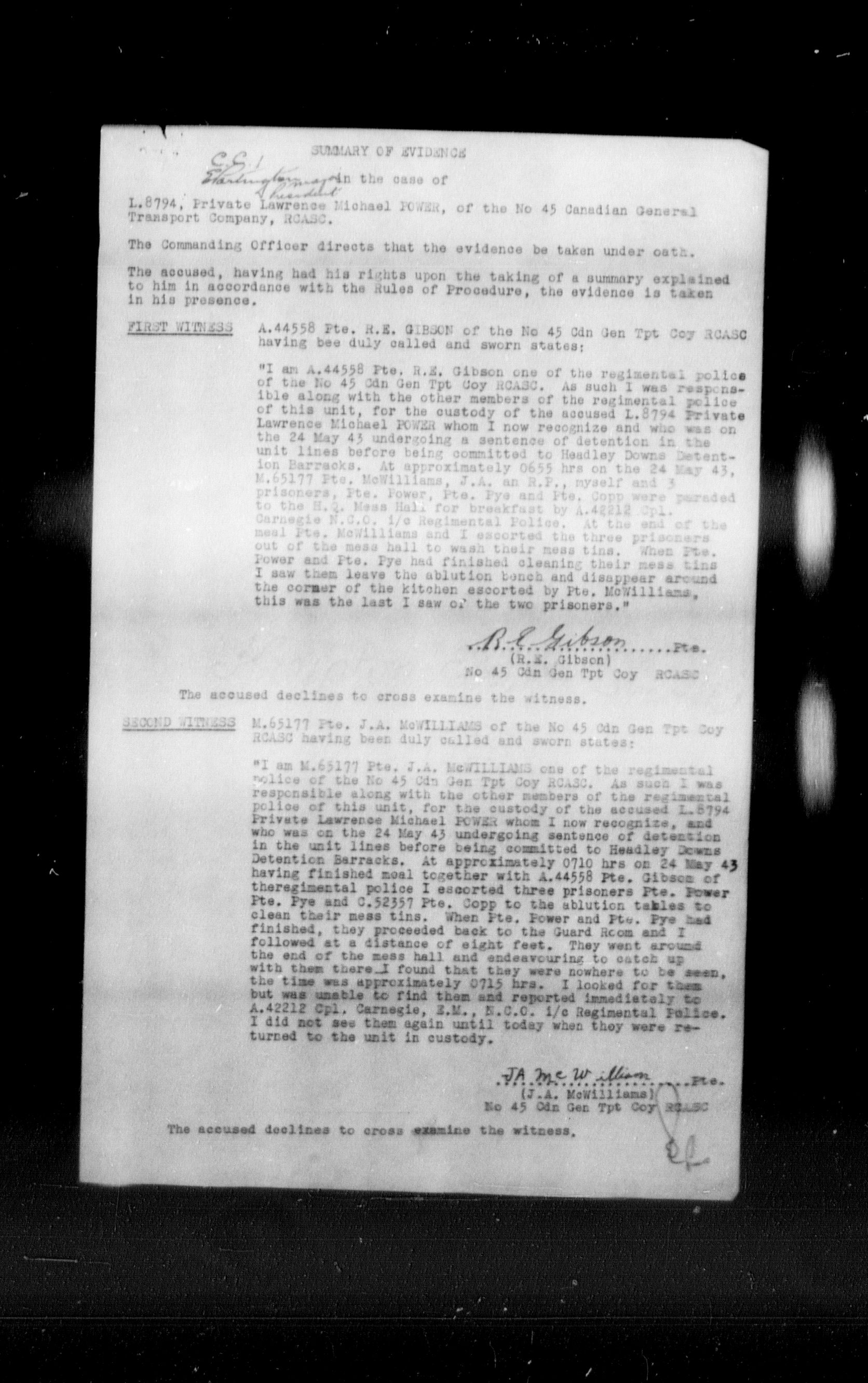 Canadian Army Courts Martial documents (1939-1945) - 15841