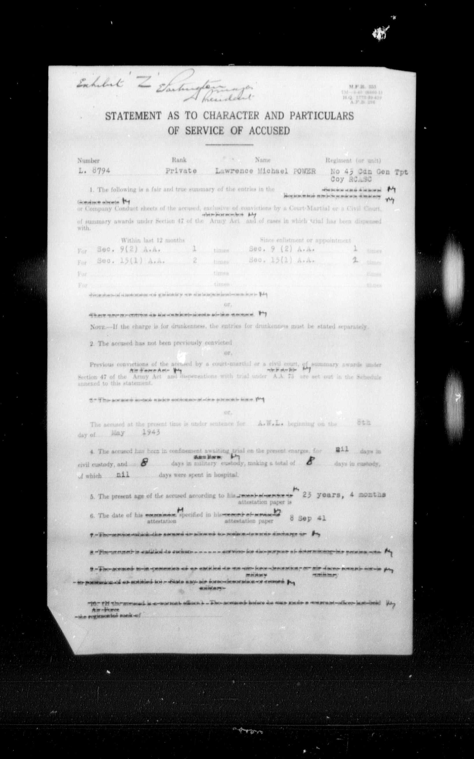 Canadian Army Courts Martial documents (1939-1945) - 15841