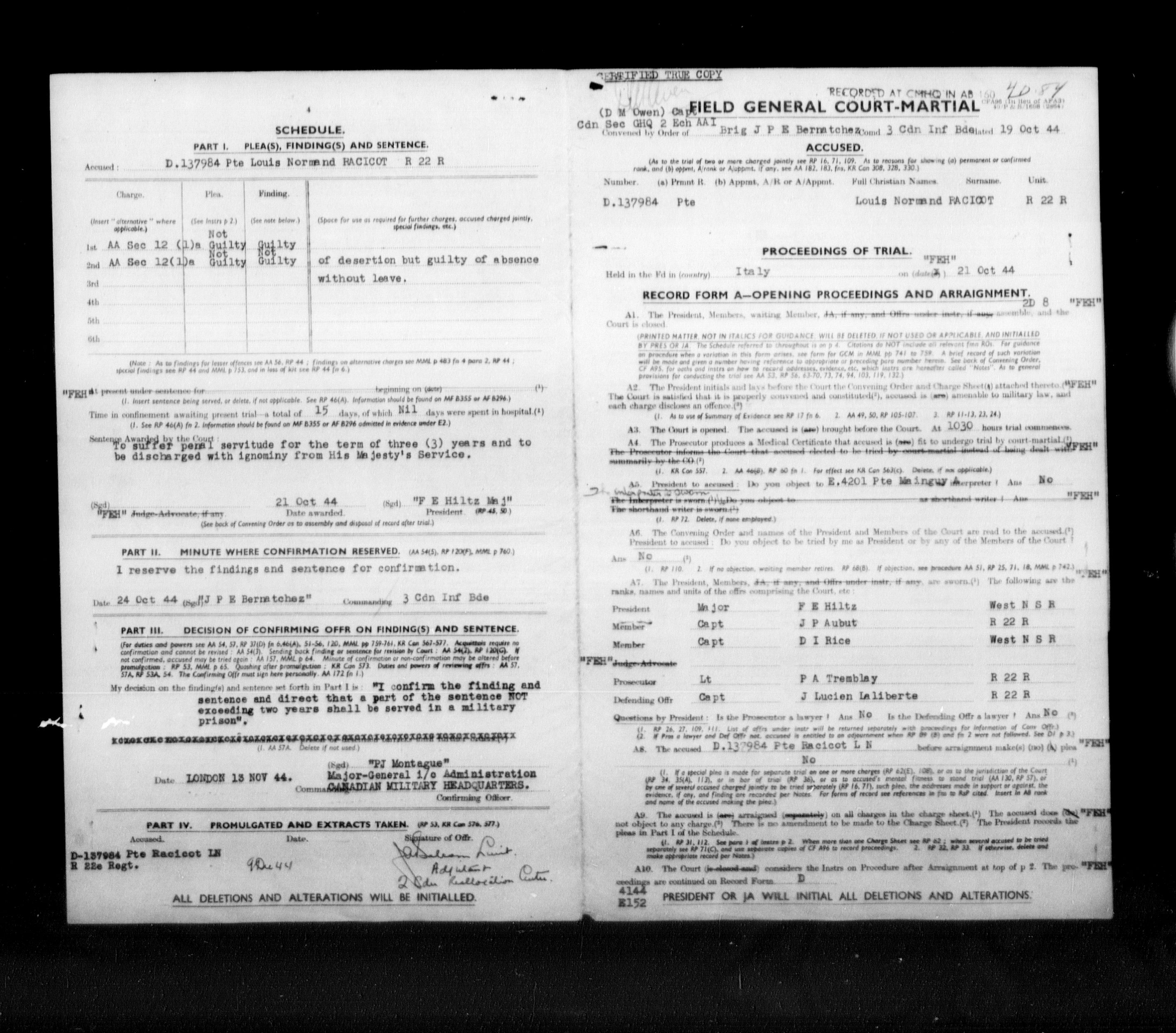 Canadian Army Courts Martial documents (1939-1945) - 15843
