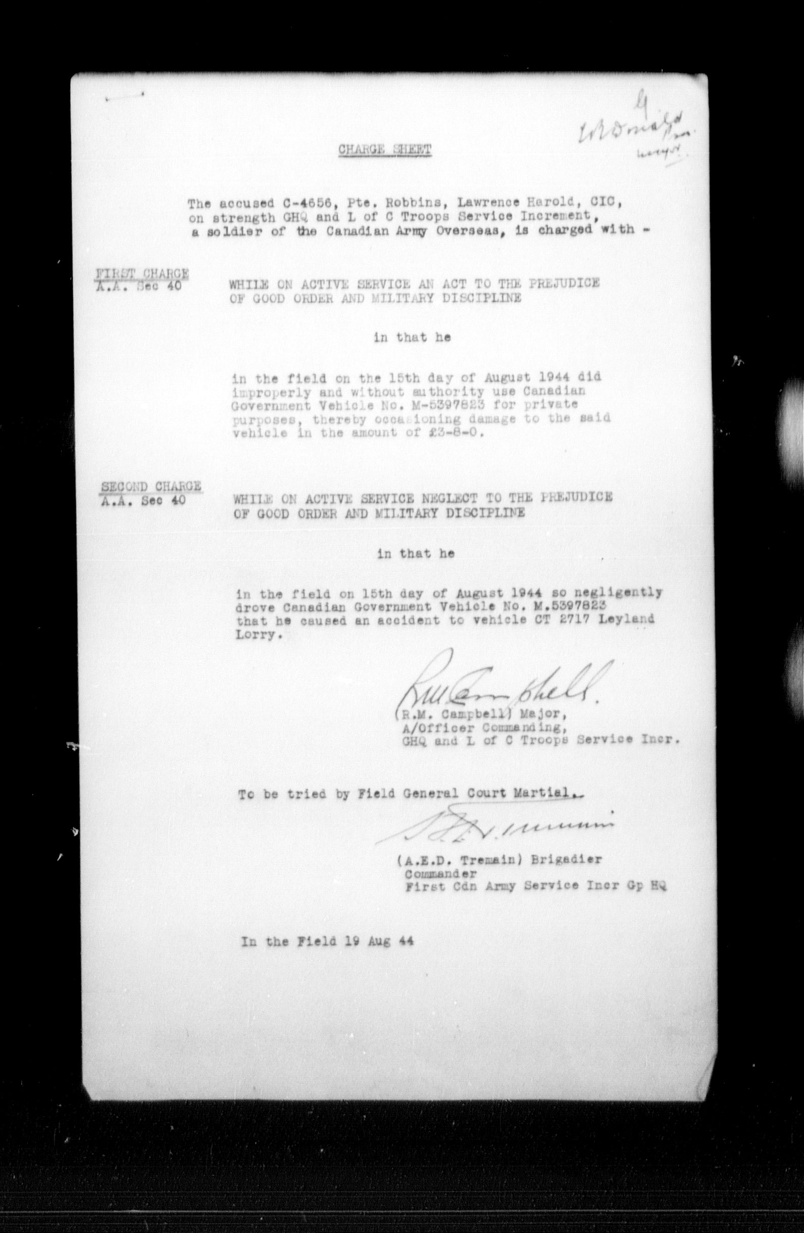 Canadian Army Courts Martial documents (1939-1945) - 15845