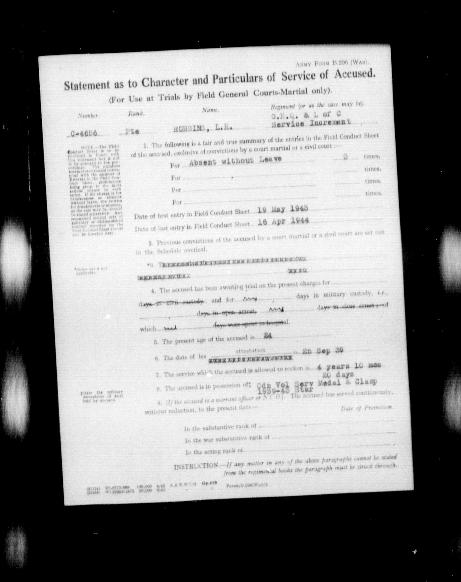 Canadian Army Courts Martial documents (1939-1945) - 15845