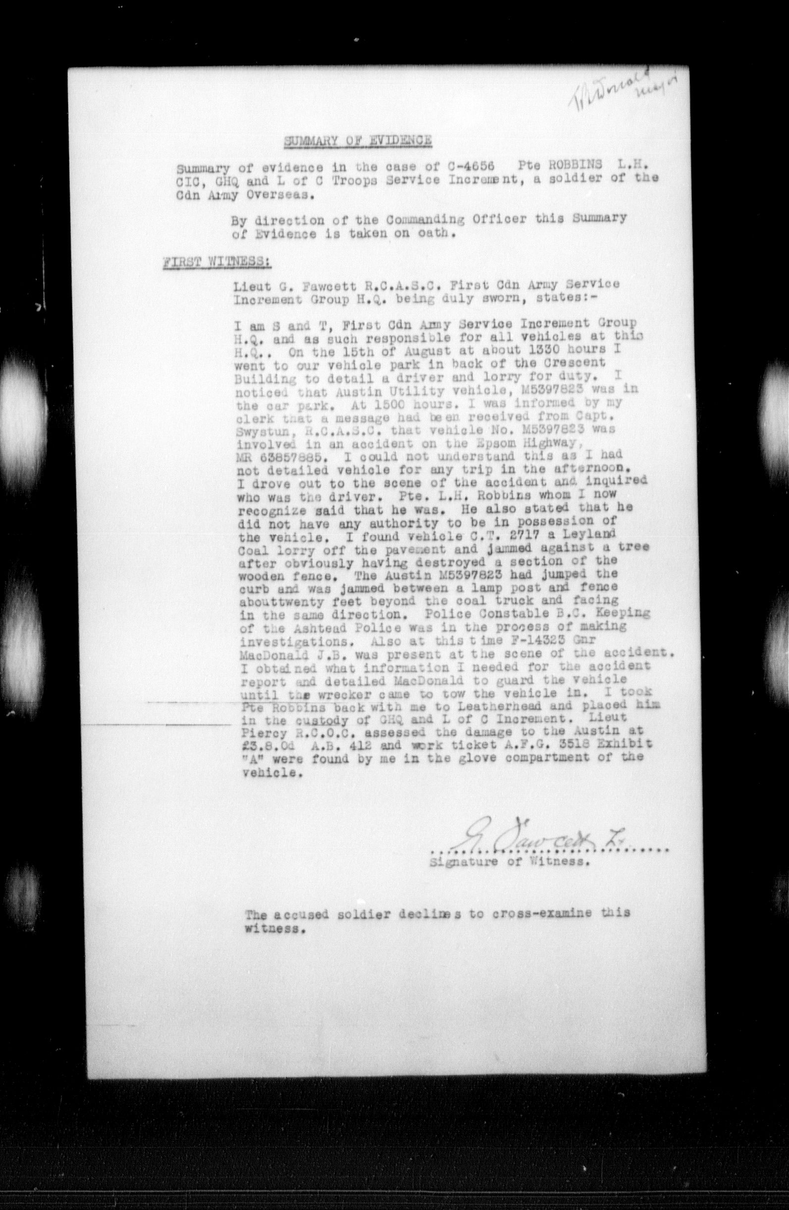 Canadian Army Courts Martial documents (1939-1945) - 15845