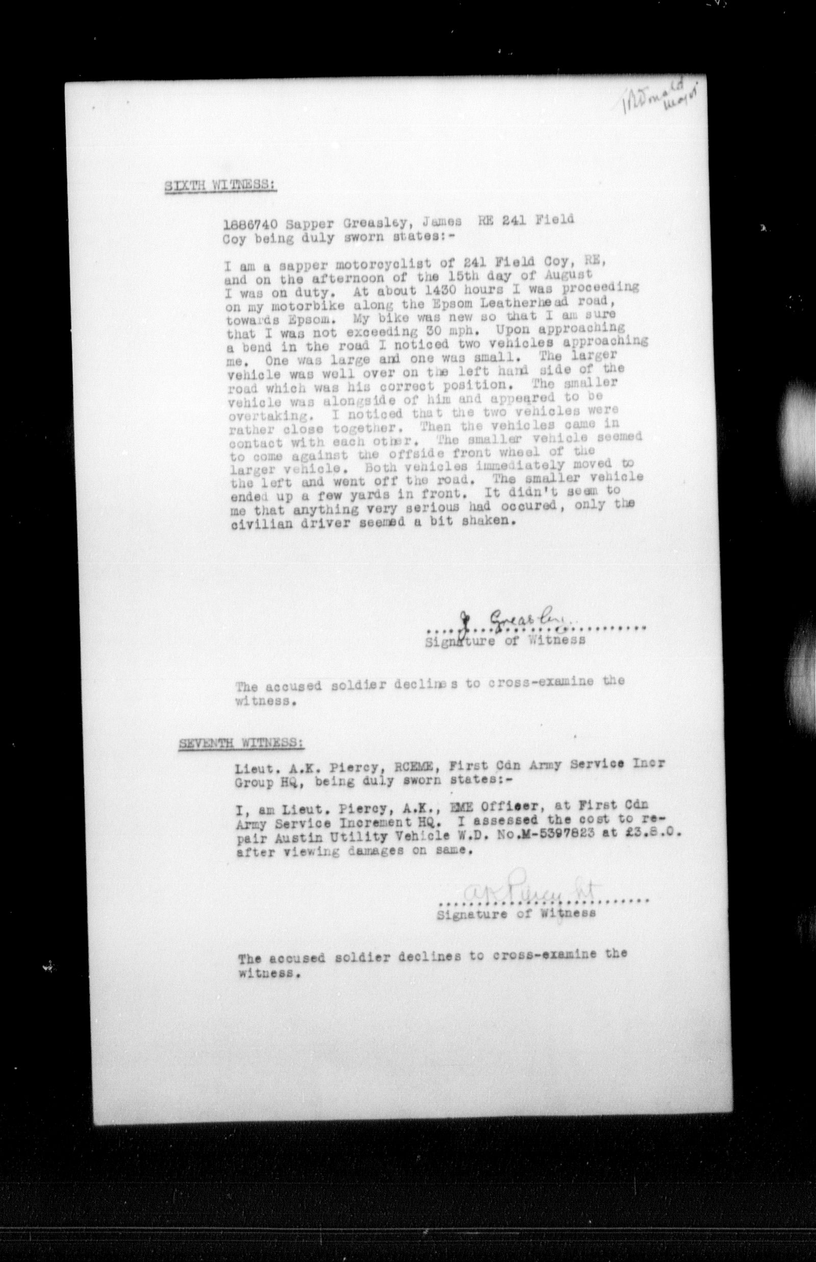 Canadian Army Courts Martial documents (1939-1945) - 15845