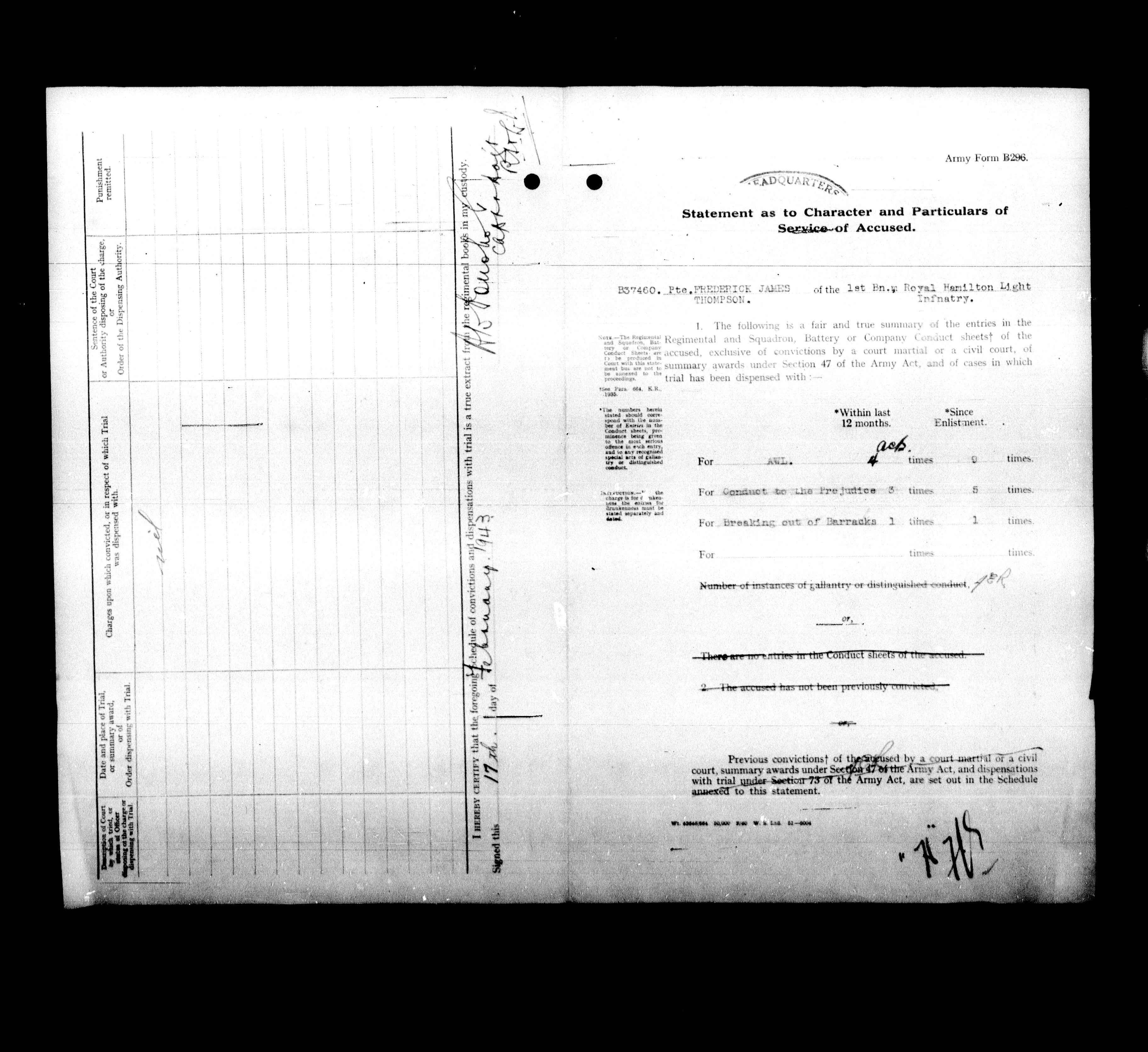 Canadian Army Courts Martial documents (1939-1945) - 15856