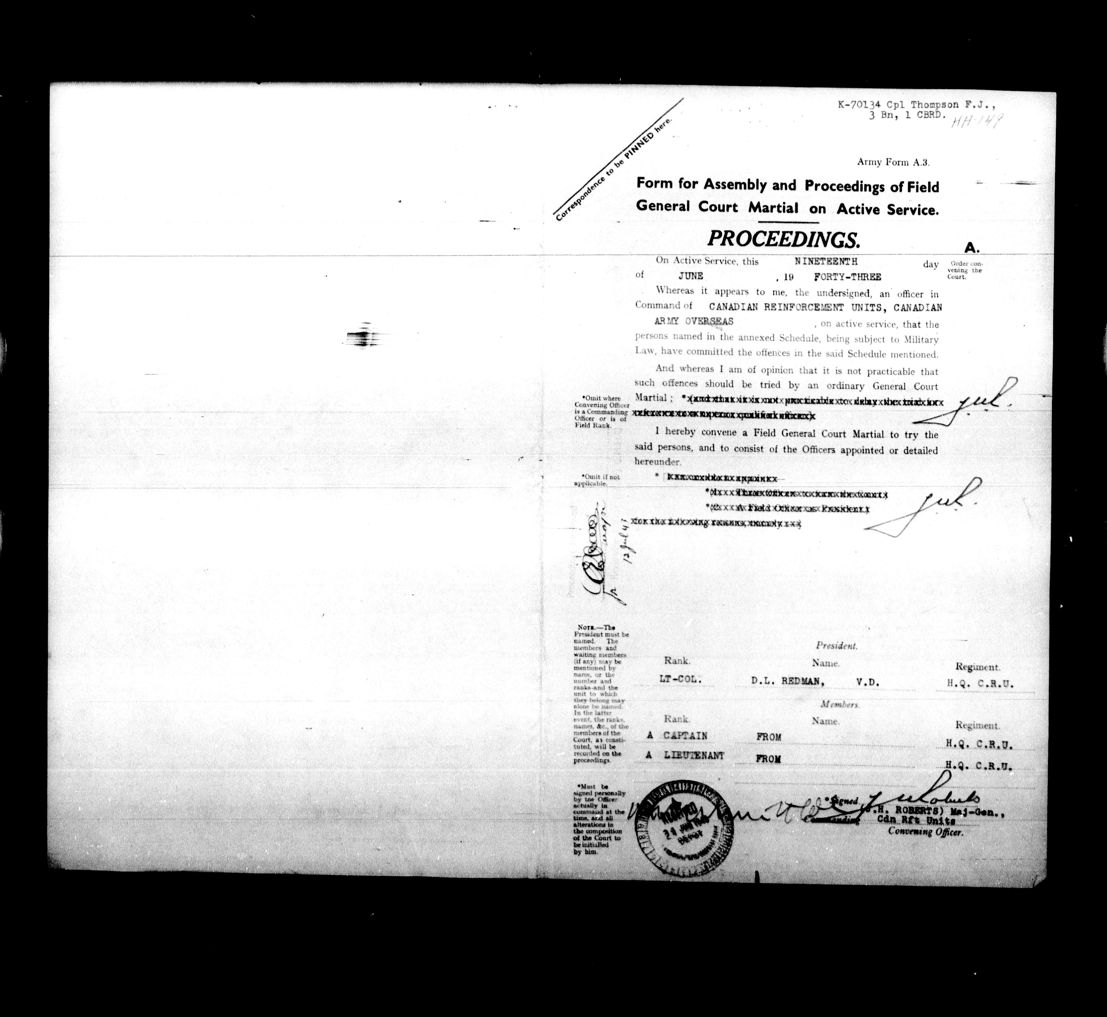 Canadian Army Courts Martial documents (1939-1945) - 15856