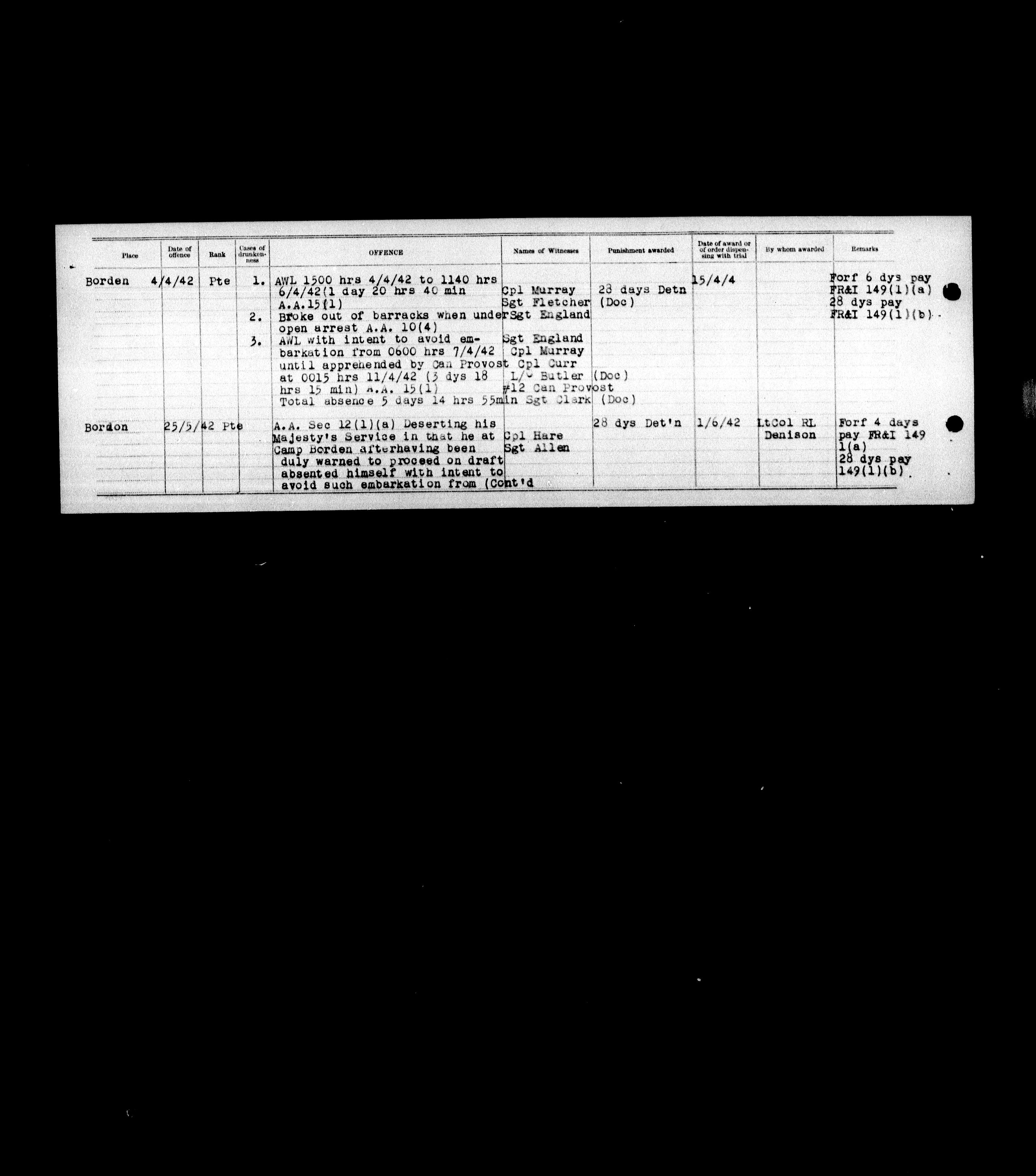 Canadian Army Courts Martial documents (1939-1945) - 15858