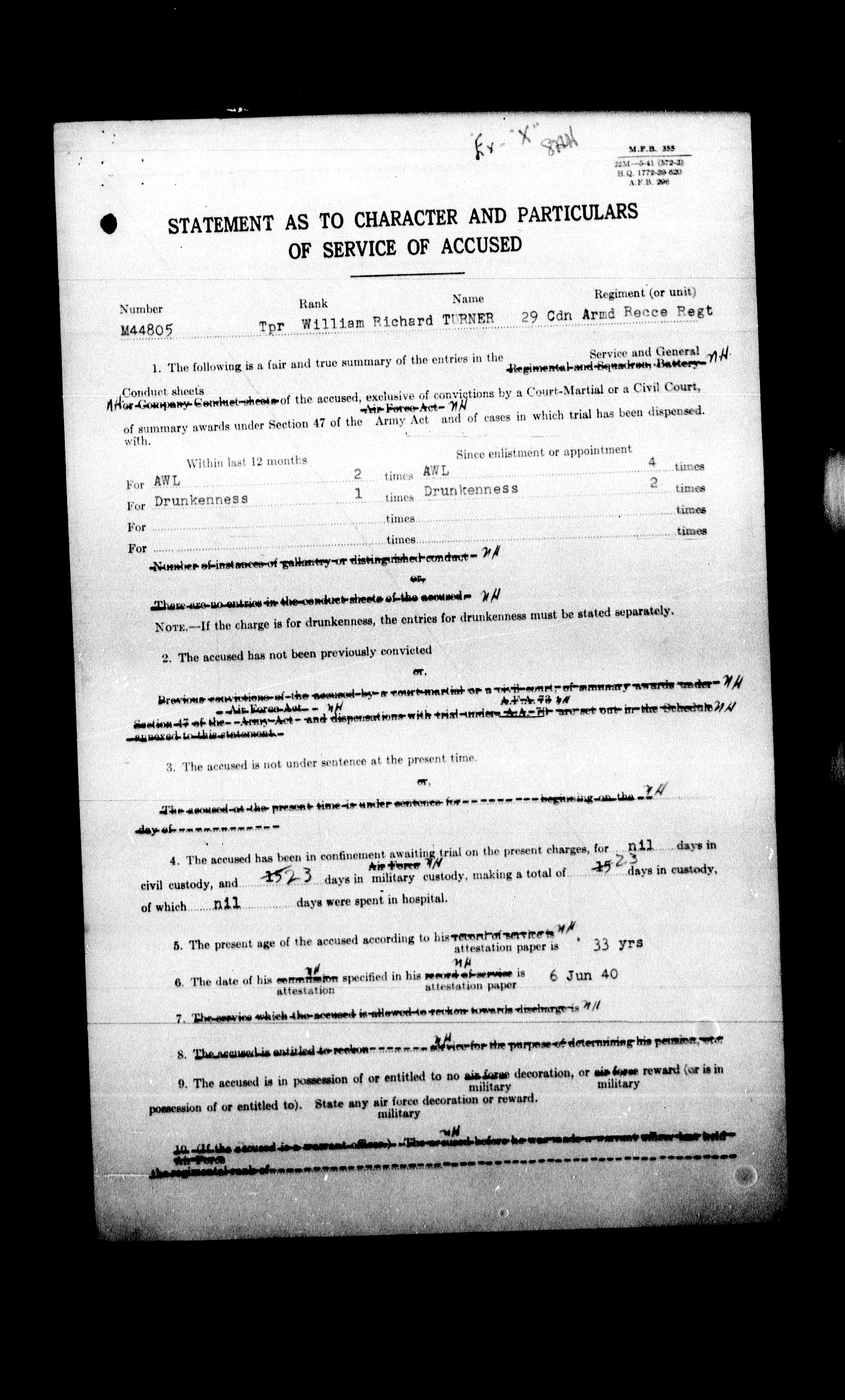 Canadian Army Courts Martial documents (1939-1945) - 15858