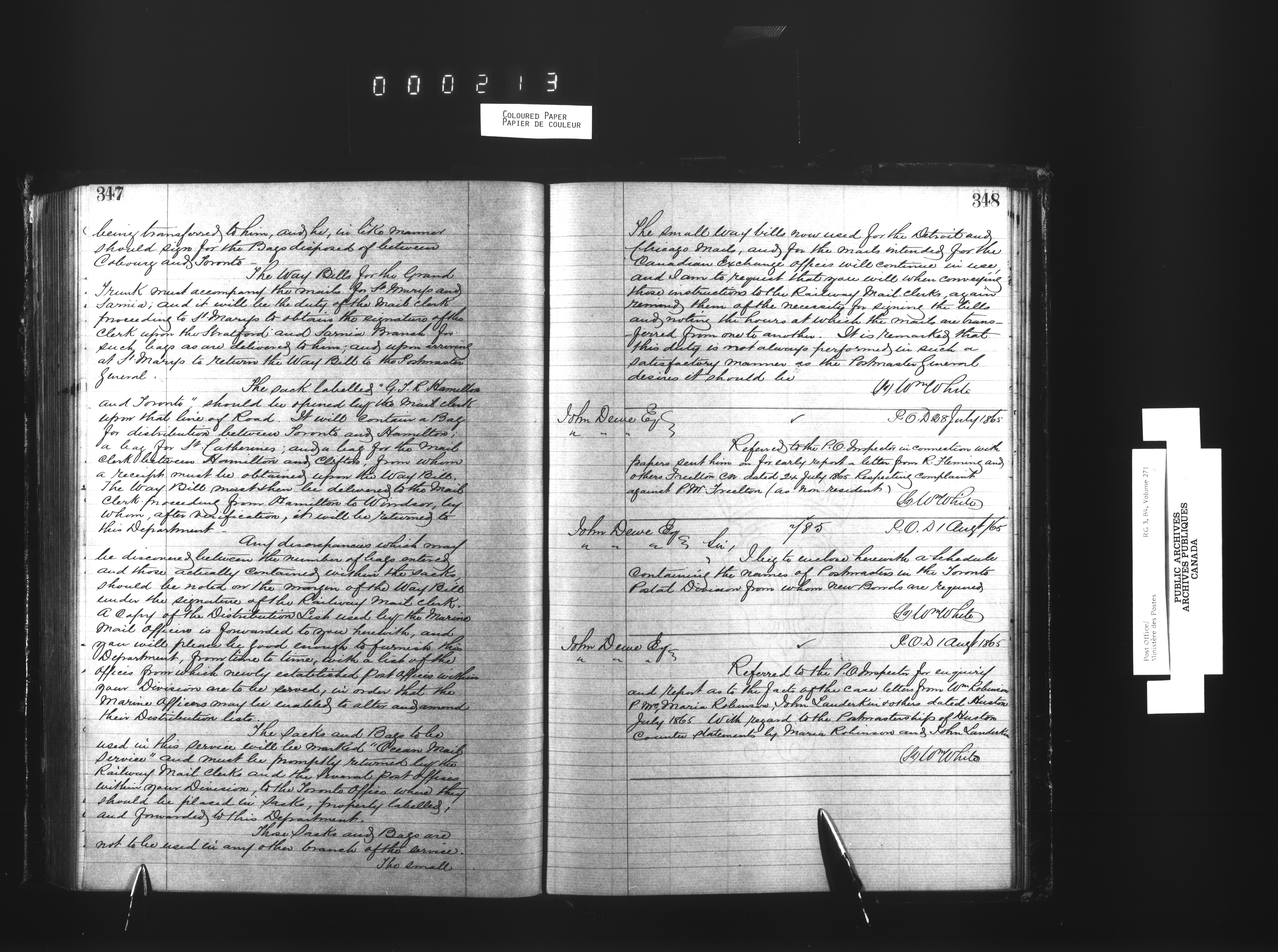 Deputy Postmaster General : correspondence addressed to the Post Office Inspectors, 1851-1902 : T-1587