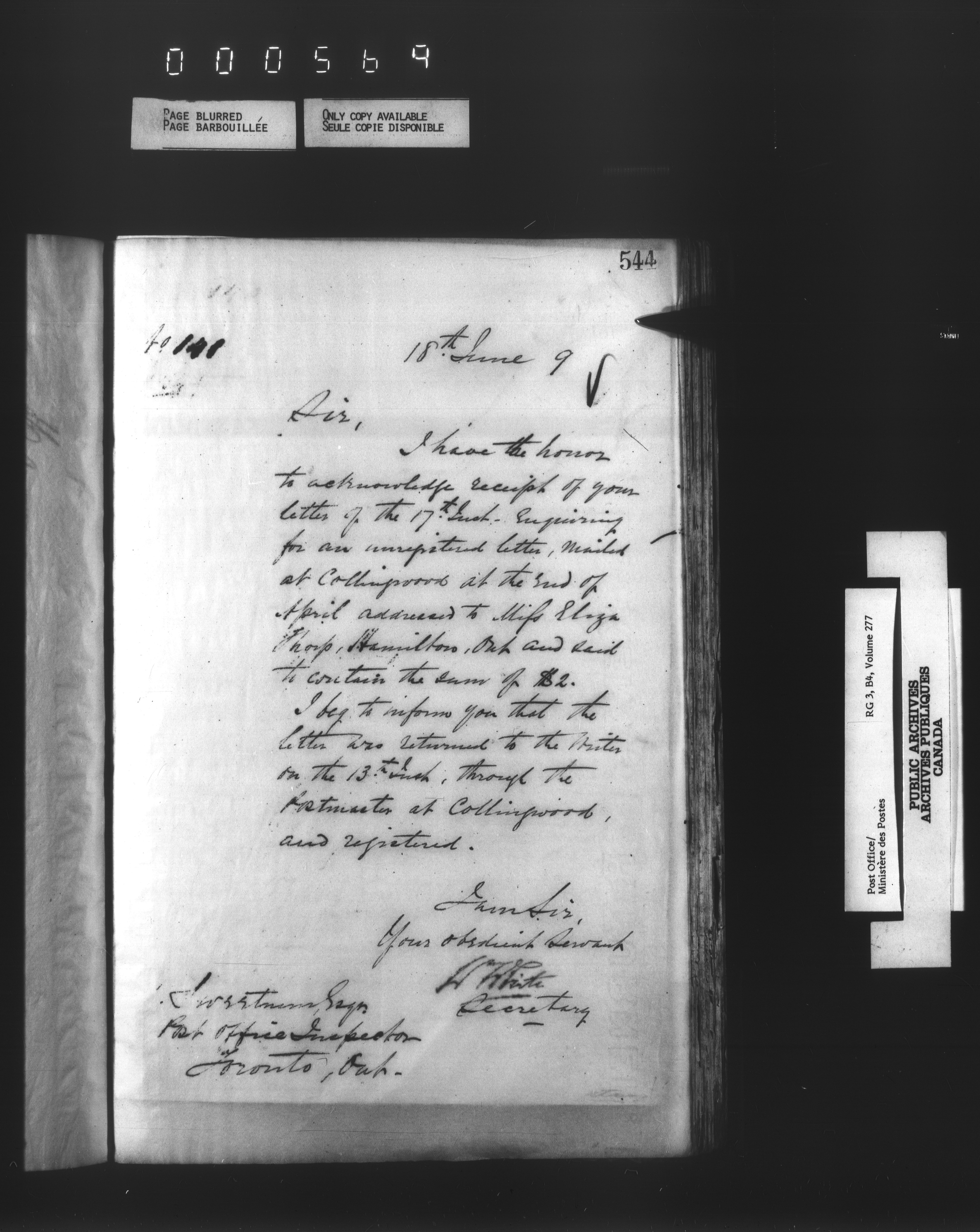 Deputy Postmaster General : correspondence addressed to the Post Office Inspectors, 1851-1902 - 1591