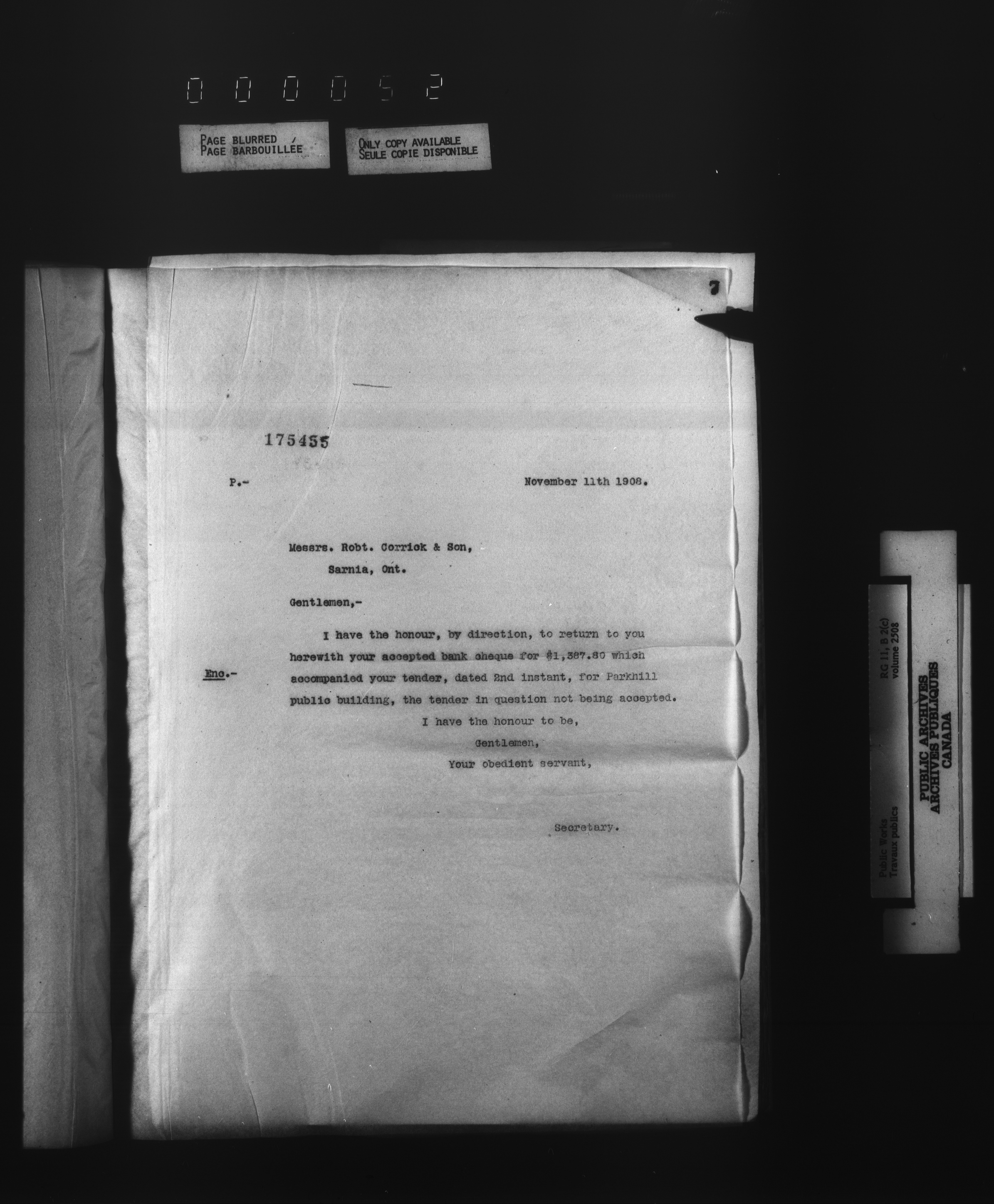 Department of Public Works : Outgoing Numbered Correspondence, 1879-1912 - 1593