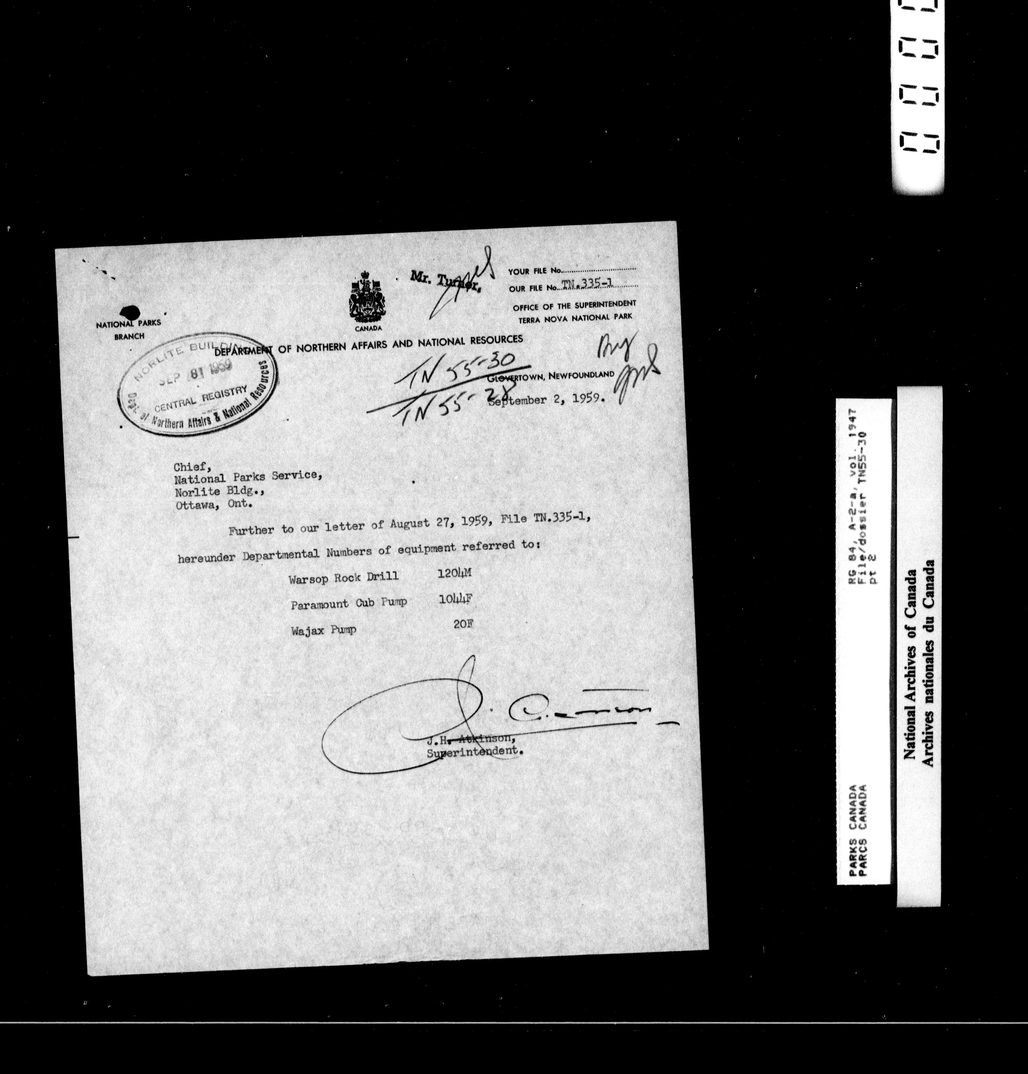 Department of Canadian Heritage, Canadian Parks Service : Park/subject classification system : T-15978