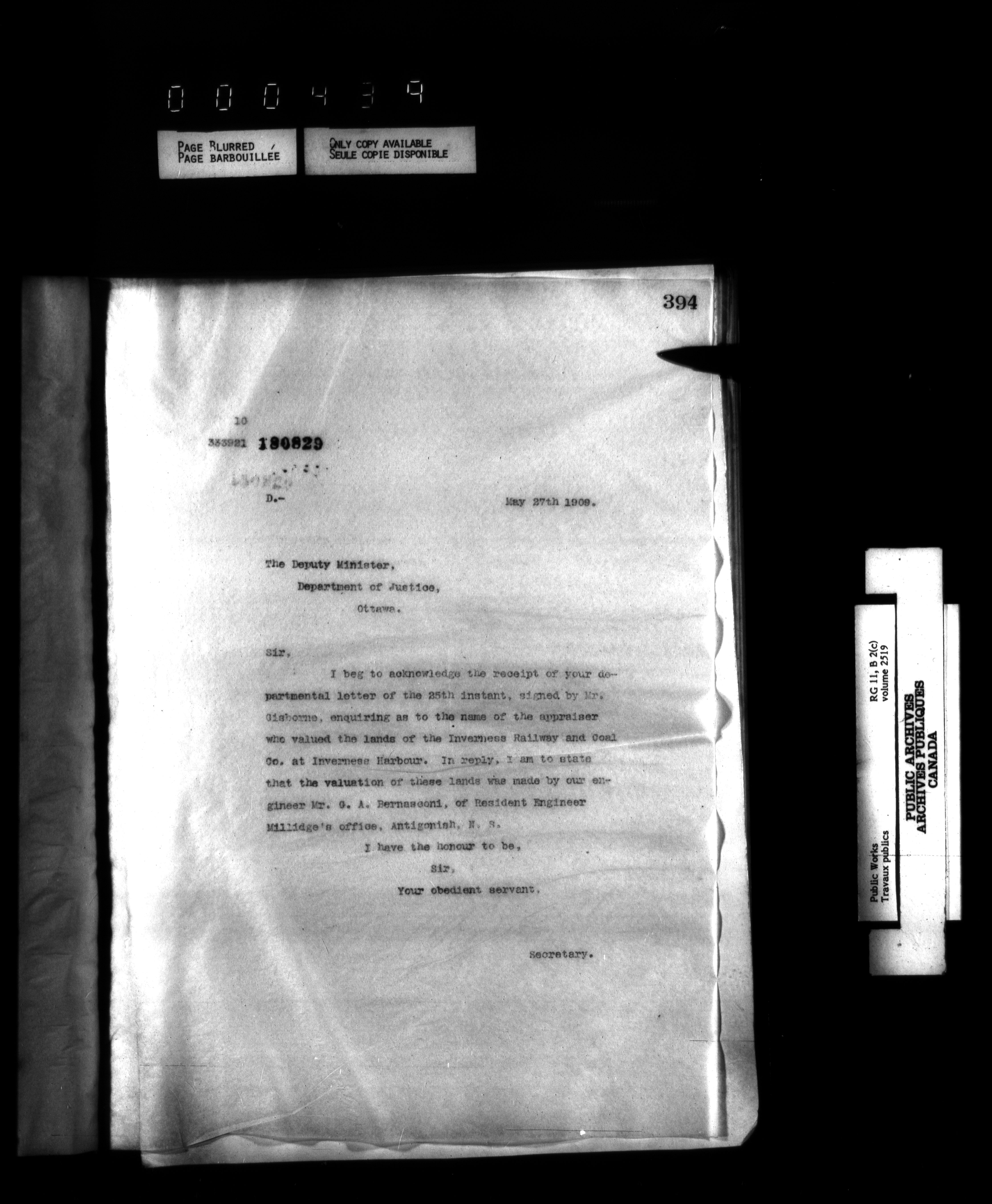 Department of Public Works : Outgoing Numbered Correspondence, 1879-1912 - 1598
