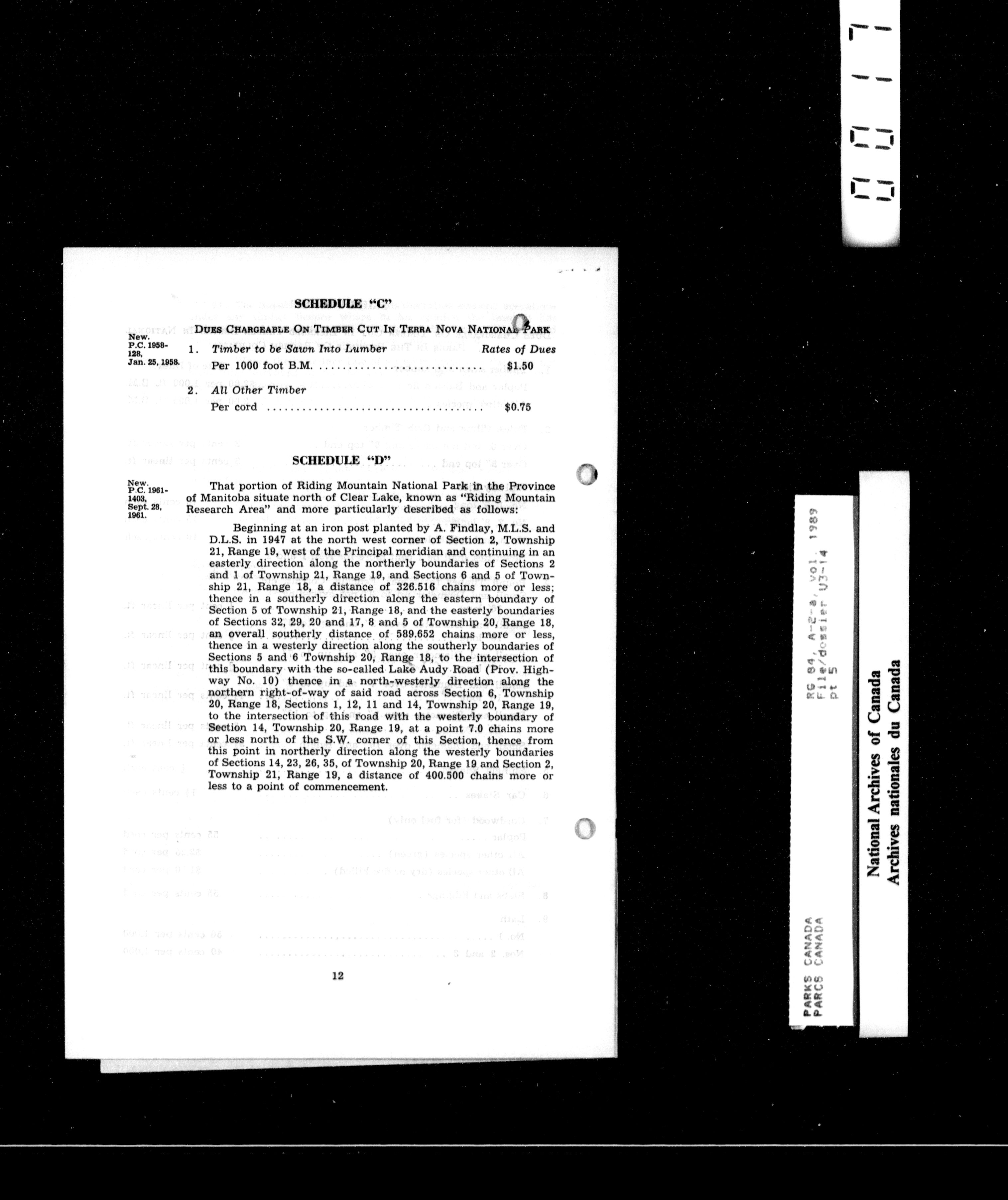 Department of Canadian Heritage, Canadian Parks Service : Park/subject classification system - 15980