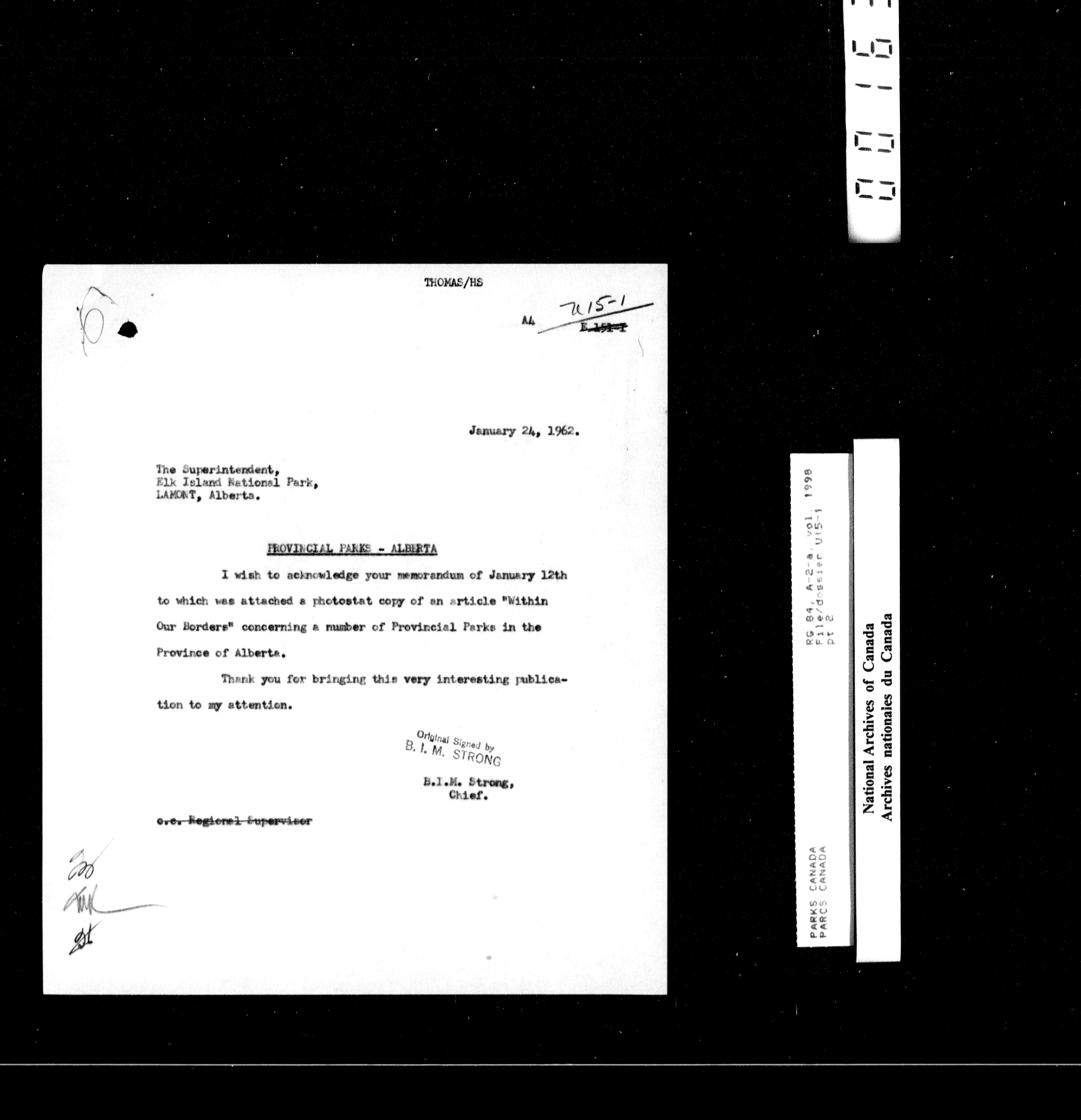 Department of Canadian Heritage, Canadian Parks Service : Park/subject classification system : T-15985
