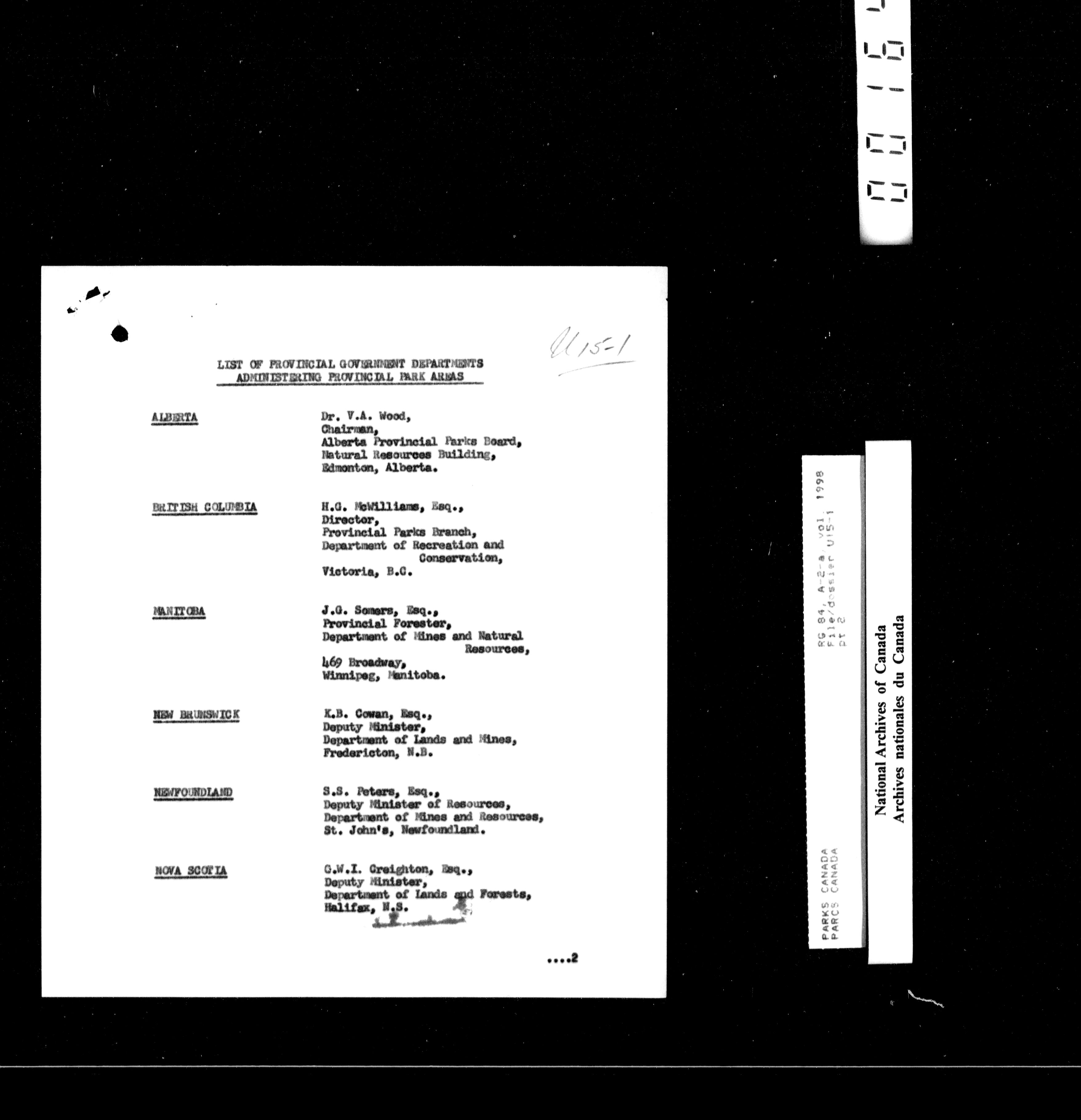 Department of Canadian Heritage, Canadian Parks Service : Park/subject classification system - 15985