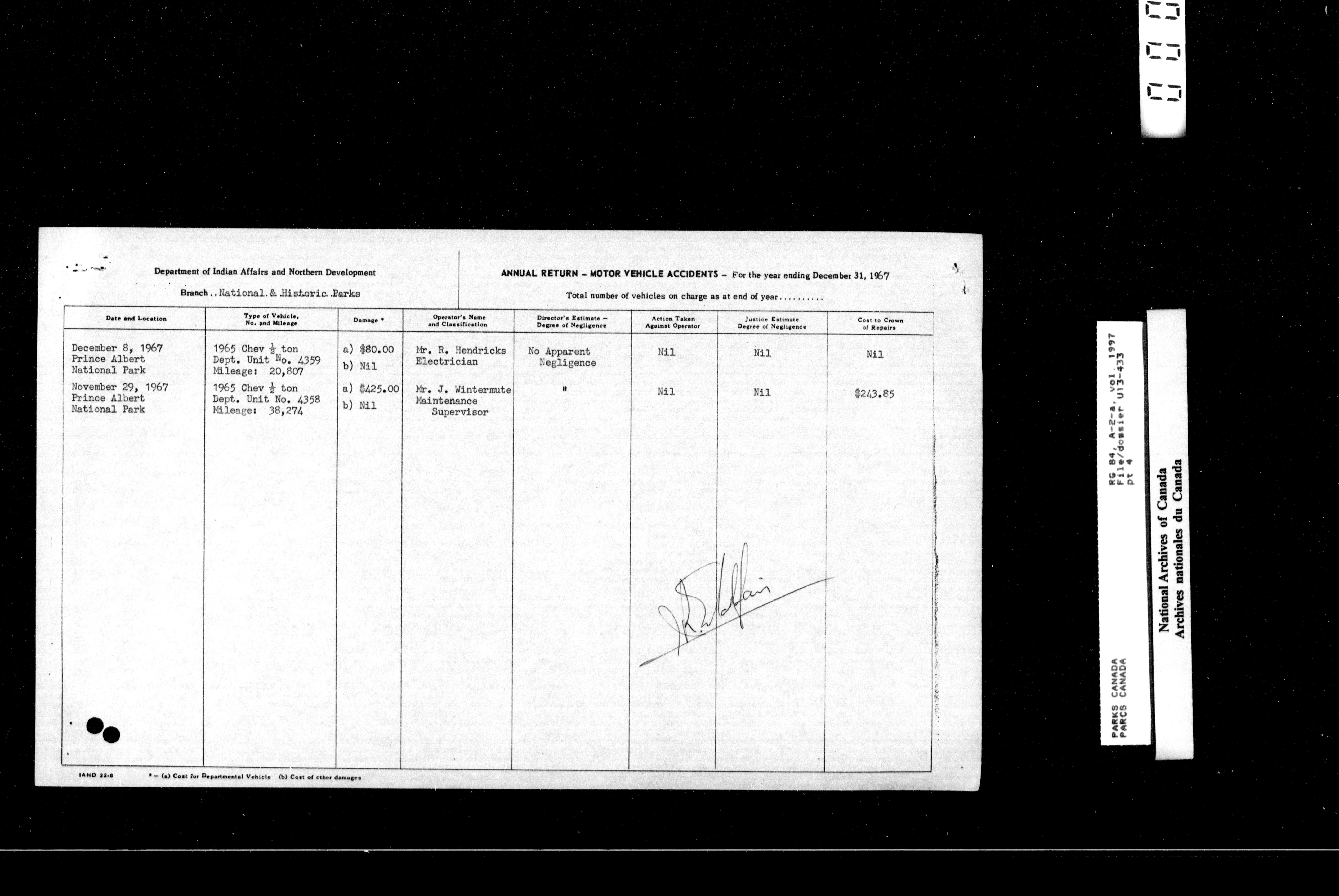 Department of Canadian Heritage, Canadian Parks Service : Park/subject classification system : T-15985