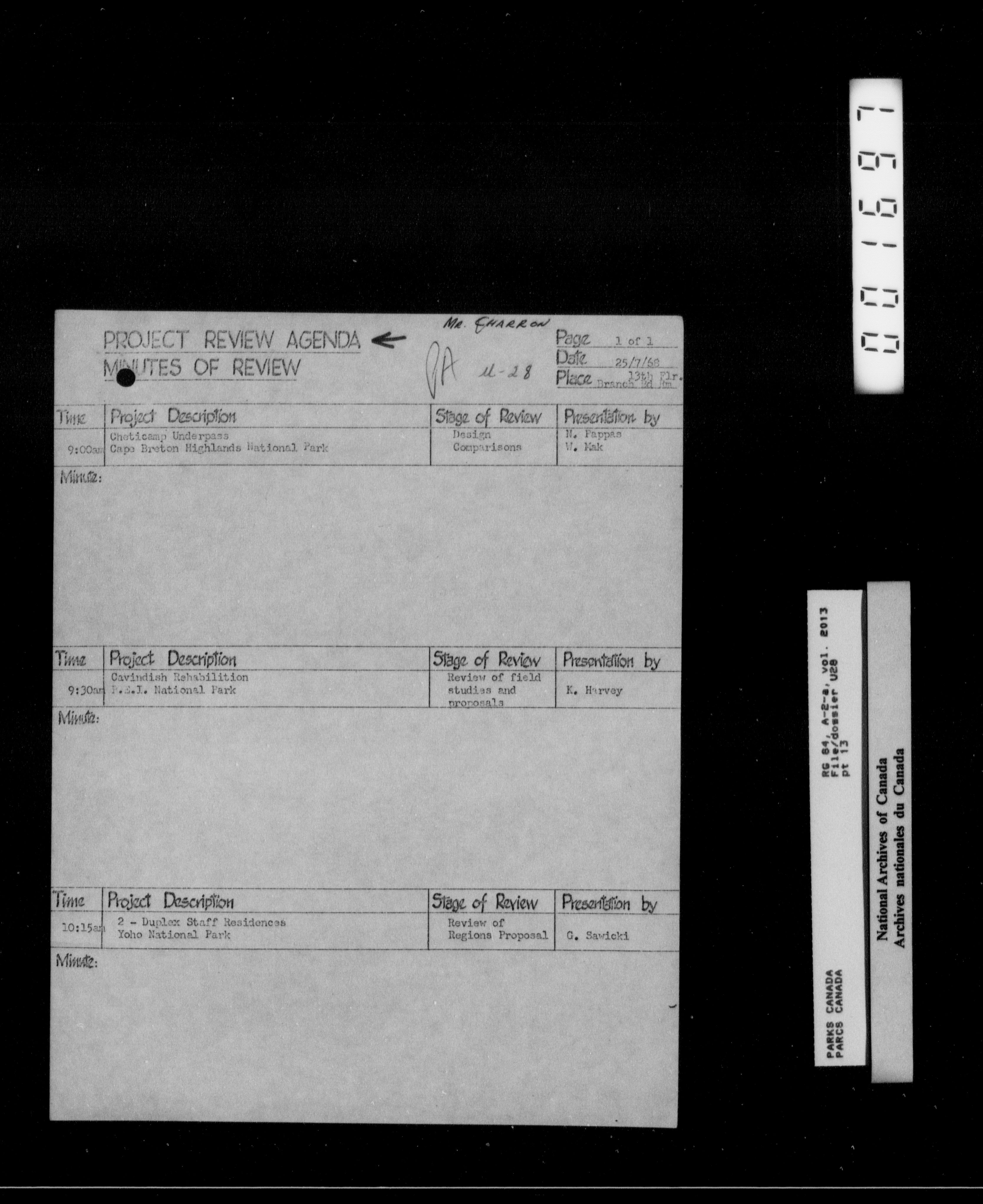 Department of Canadian Heritage, Canadian Parks Service : Park/subject classification system : T-15987