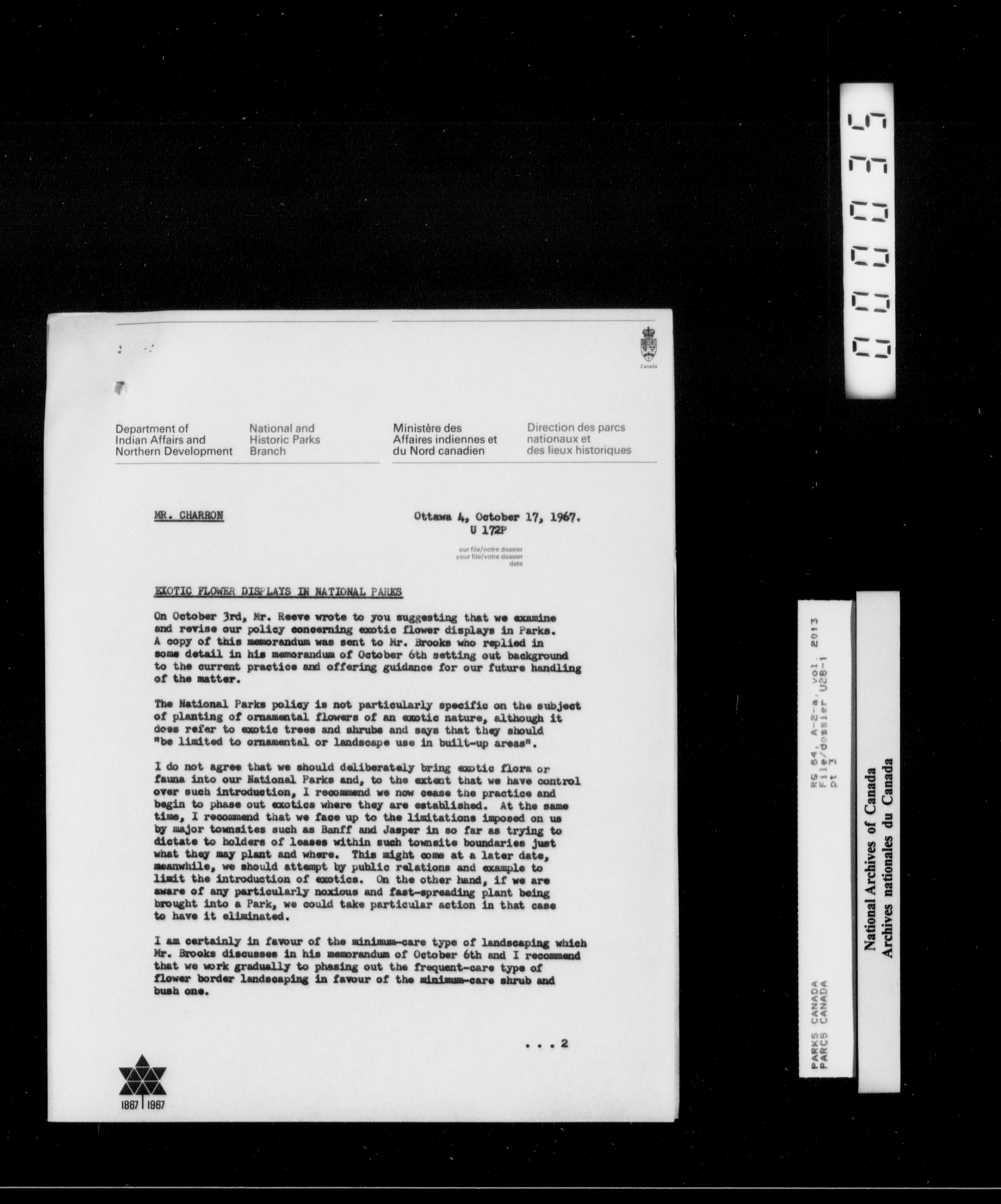 Department of Canadian Heritage, Canadian Parks Service : Park/subject classification system : T-15988