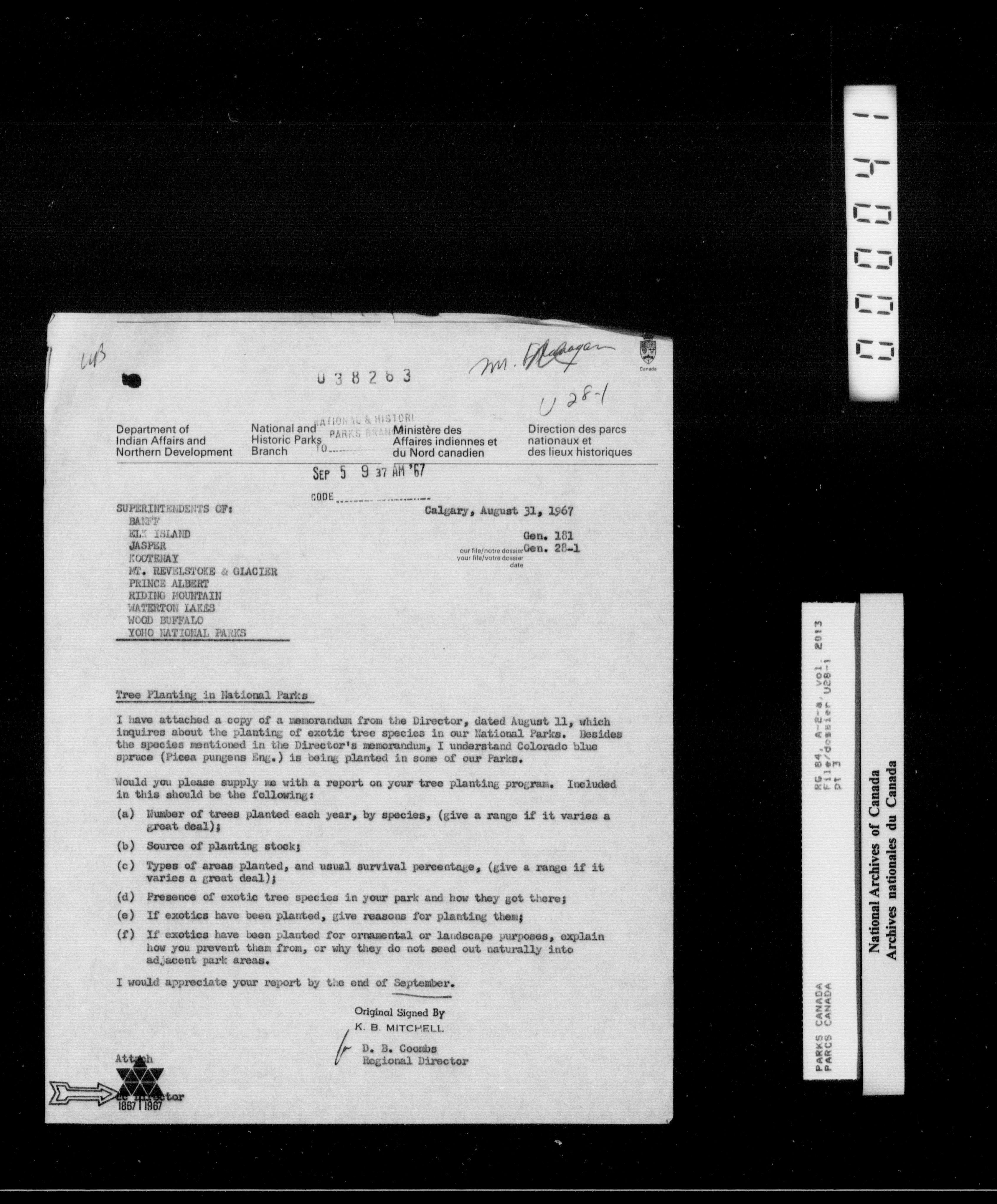 Department of Canadian Heritage, Canadian Parks Service : Park/subject classification system : T-15988