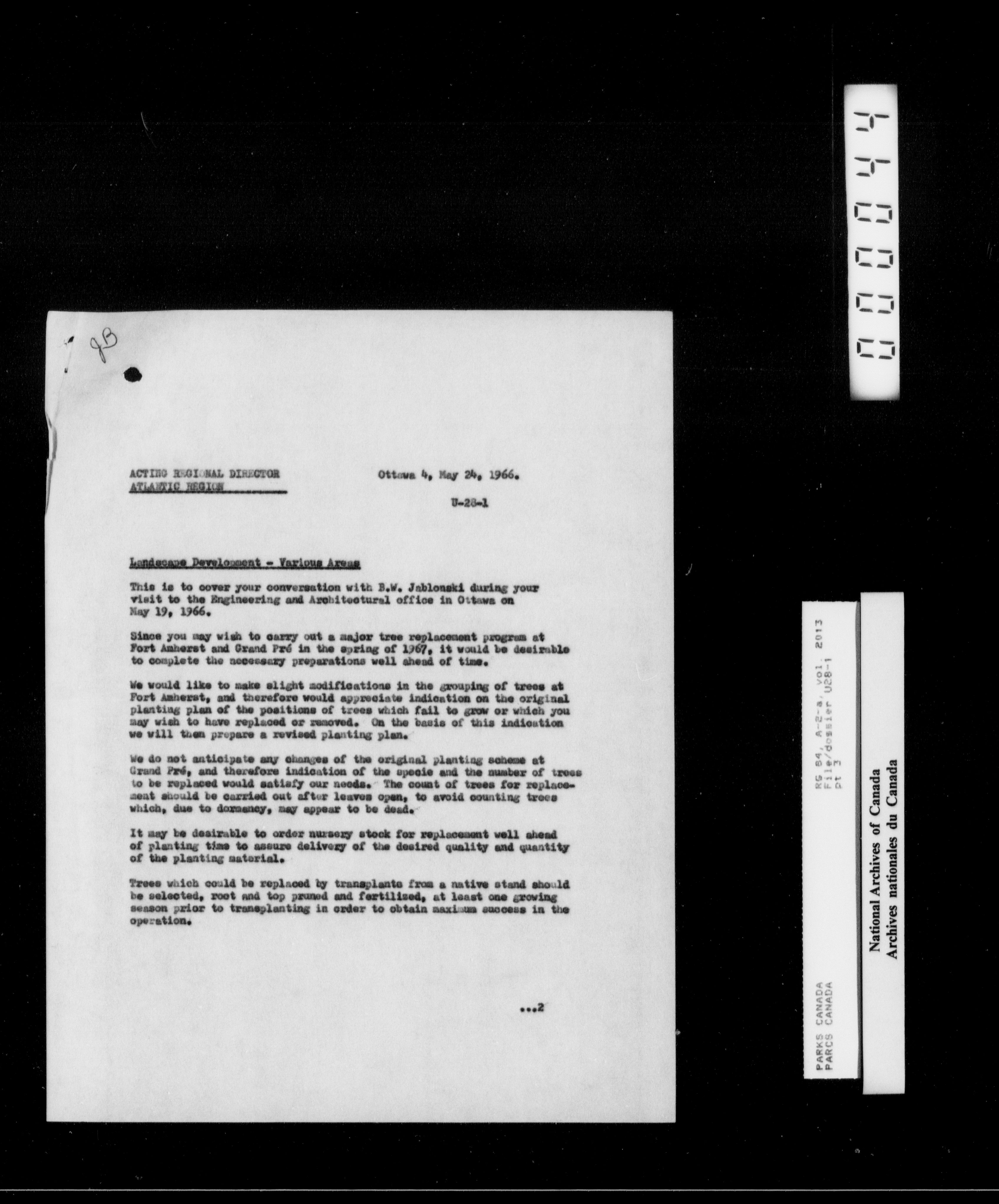 Department of Canadian Heritage, Canadian Parks Service : Park/subject classification system : T-15988