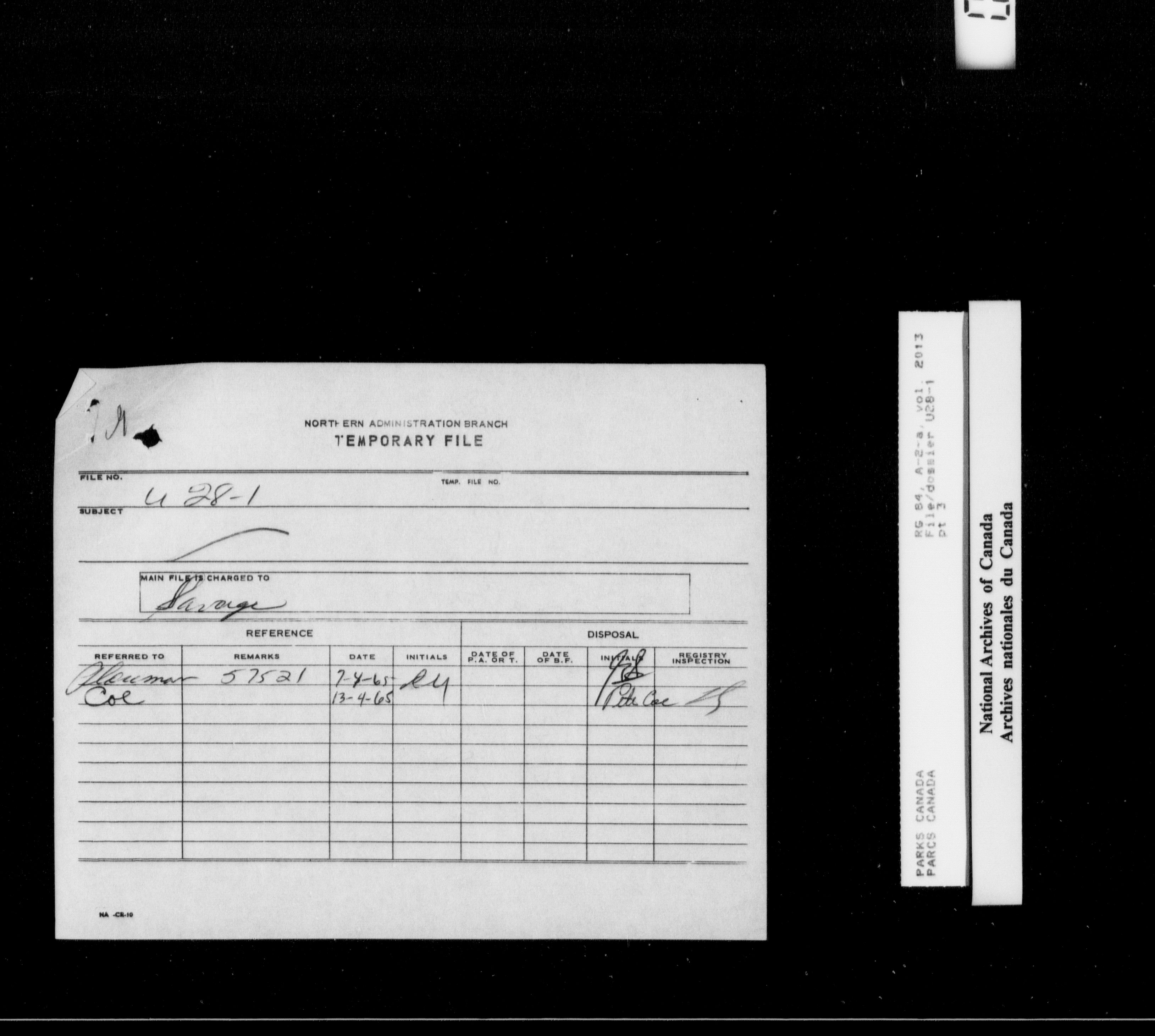 Department of Canadian Heritage, Canadian Parks Service : Park/subject classification system : T-15988
