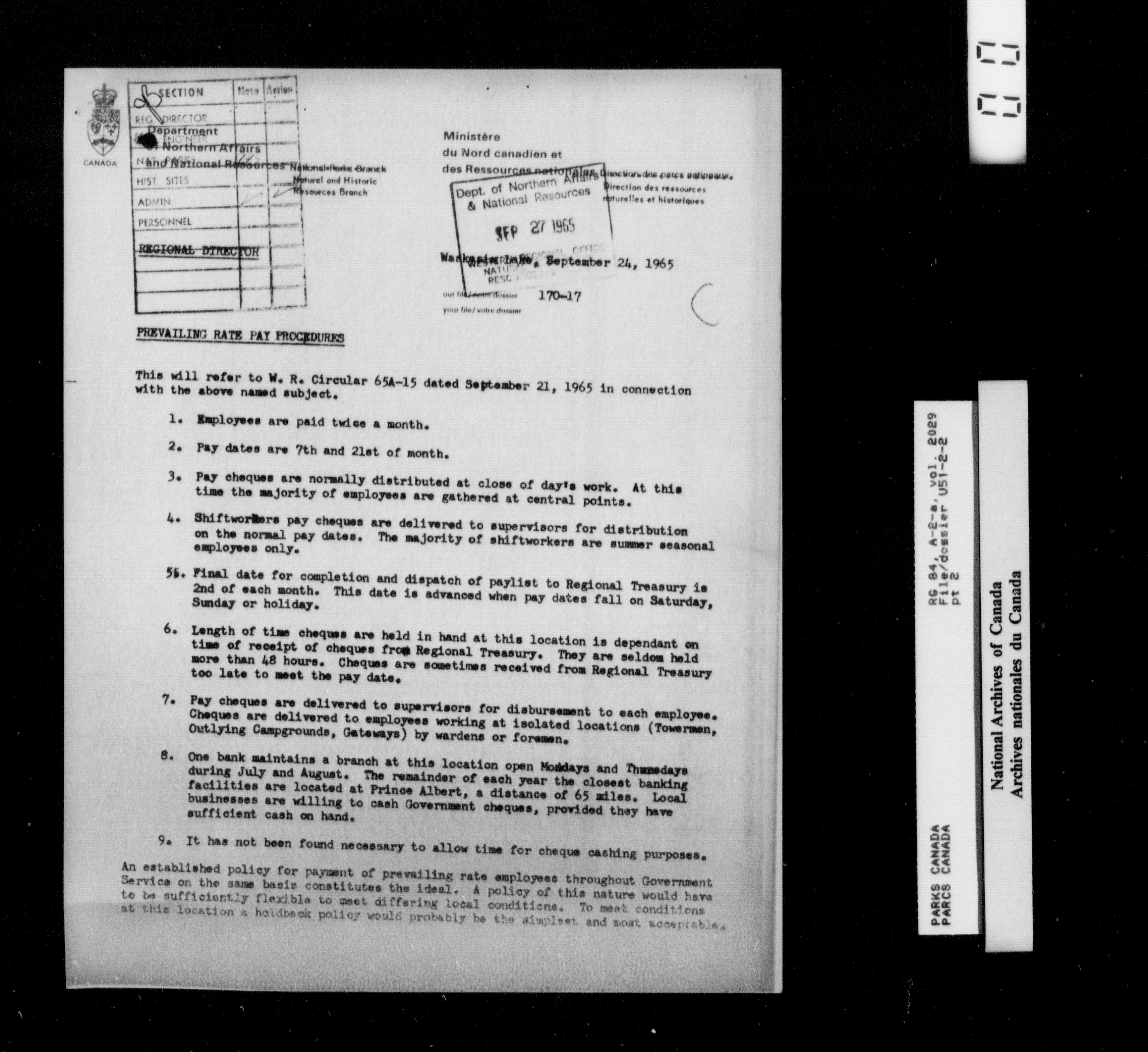Department of Canadian Heritage, Canadian Parks Service : Park/subject classification system - 15998