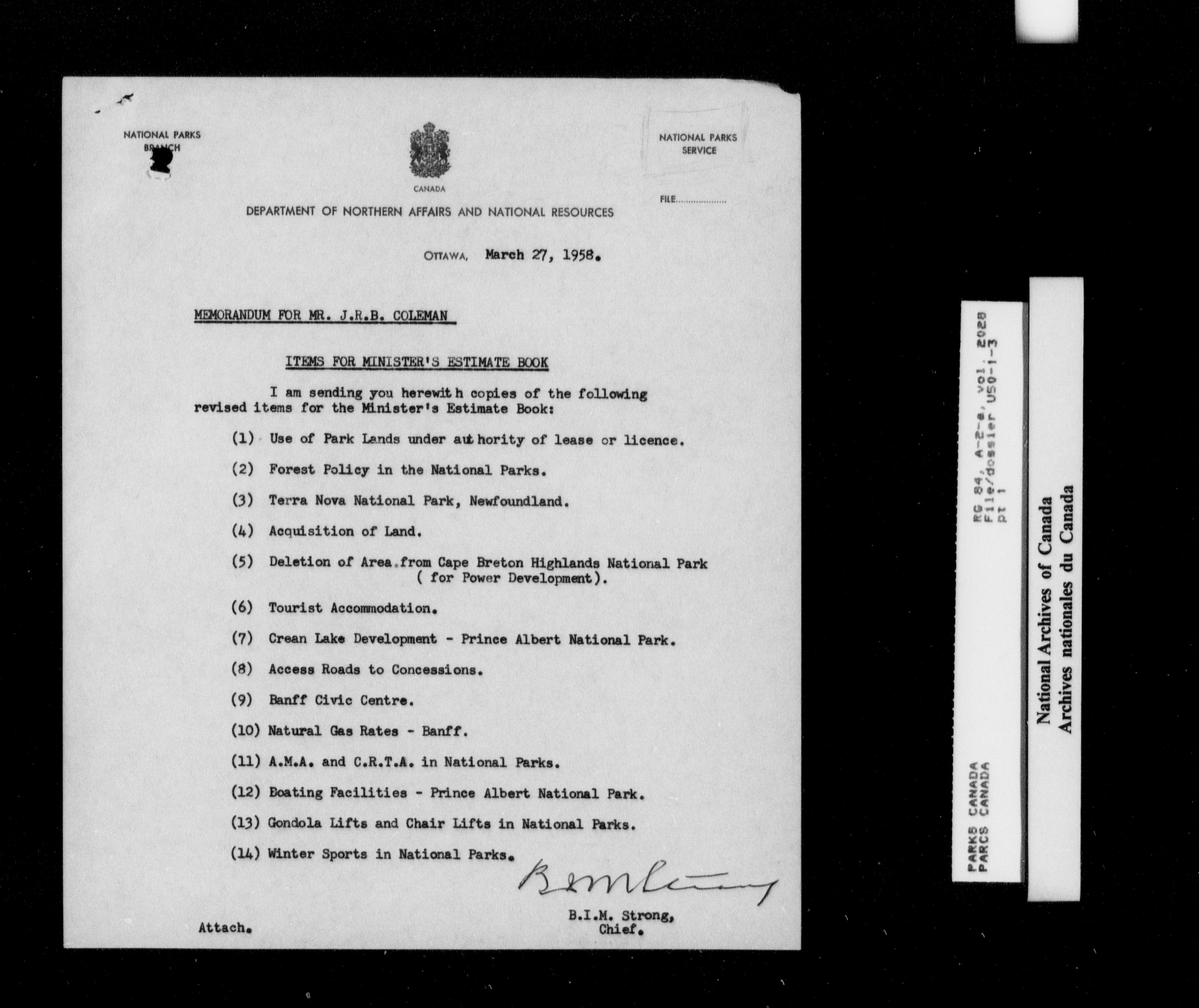 Department of Canadian Heritage, Canadian Parks Service : Park/subject classification system : T-15998