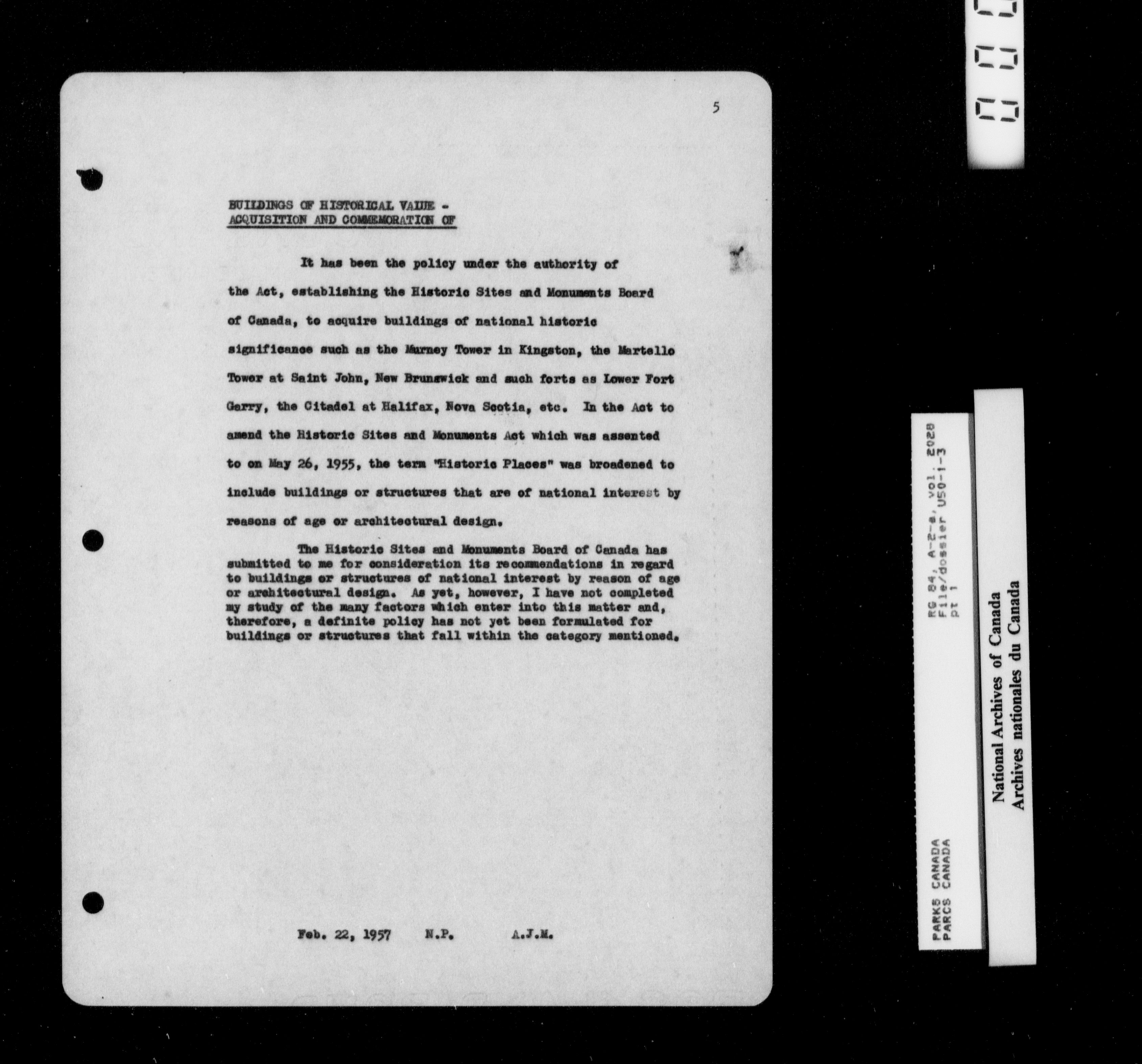 Department of Canadian Heritage, Canadian Parks Service : Park/subject classification system : T-15998