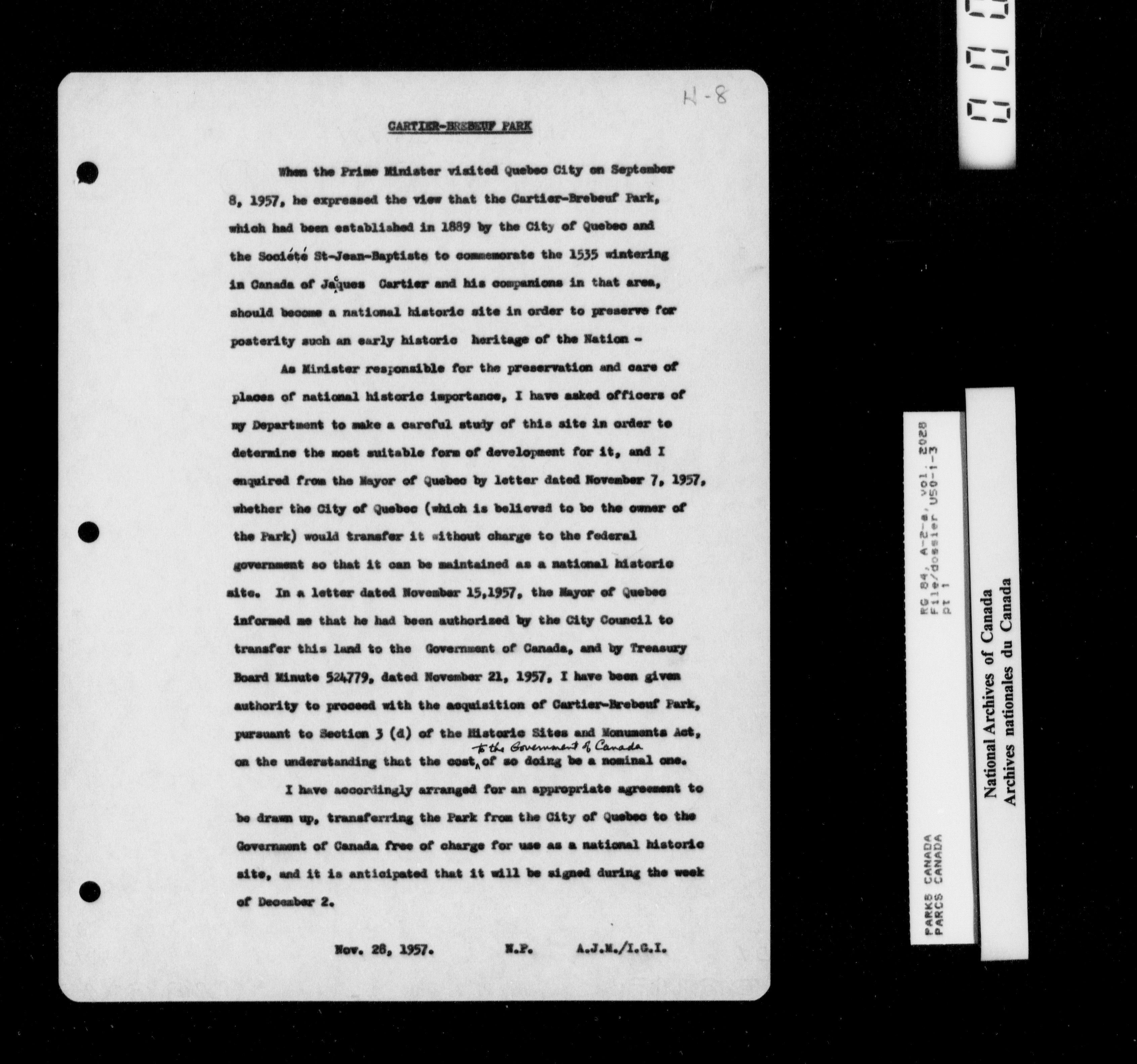 Department of Canadian Heritage, Canadian Parks Service : Park/subject classification system : T-15998
