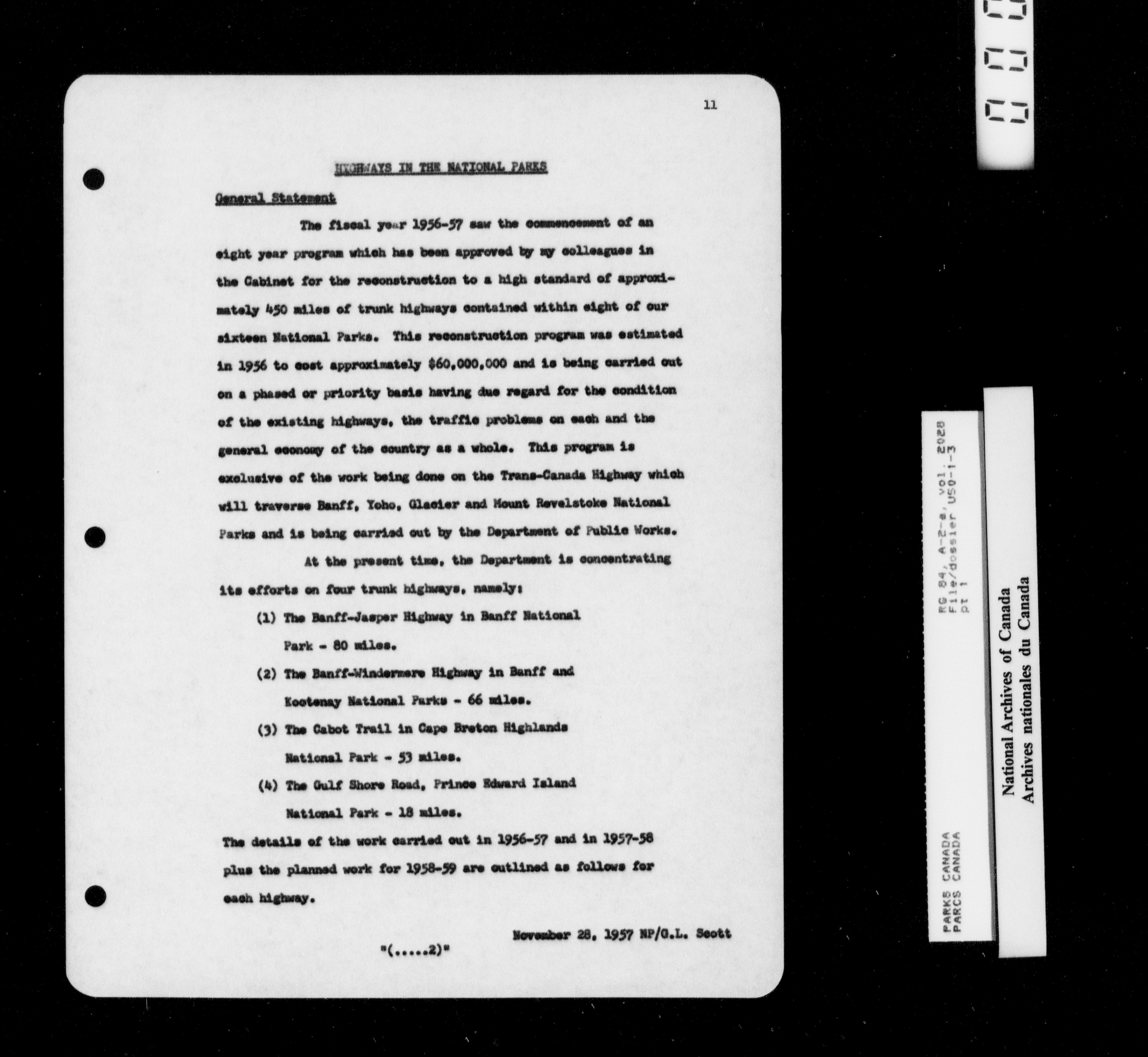 Department of Canadian Heritage, Canadian Parks Service : Park/subject classification system - 15998