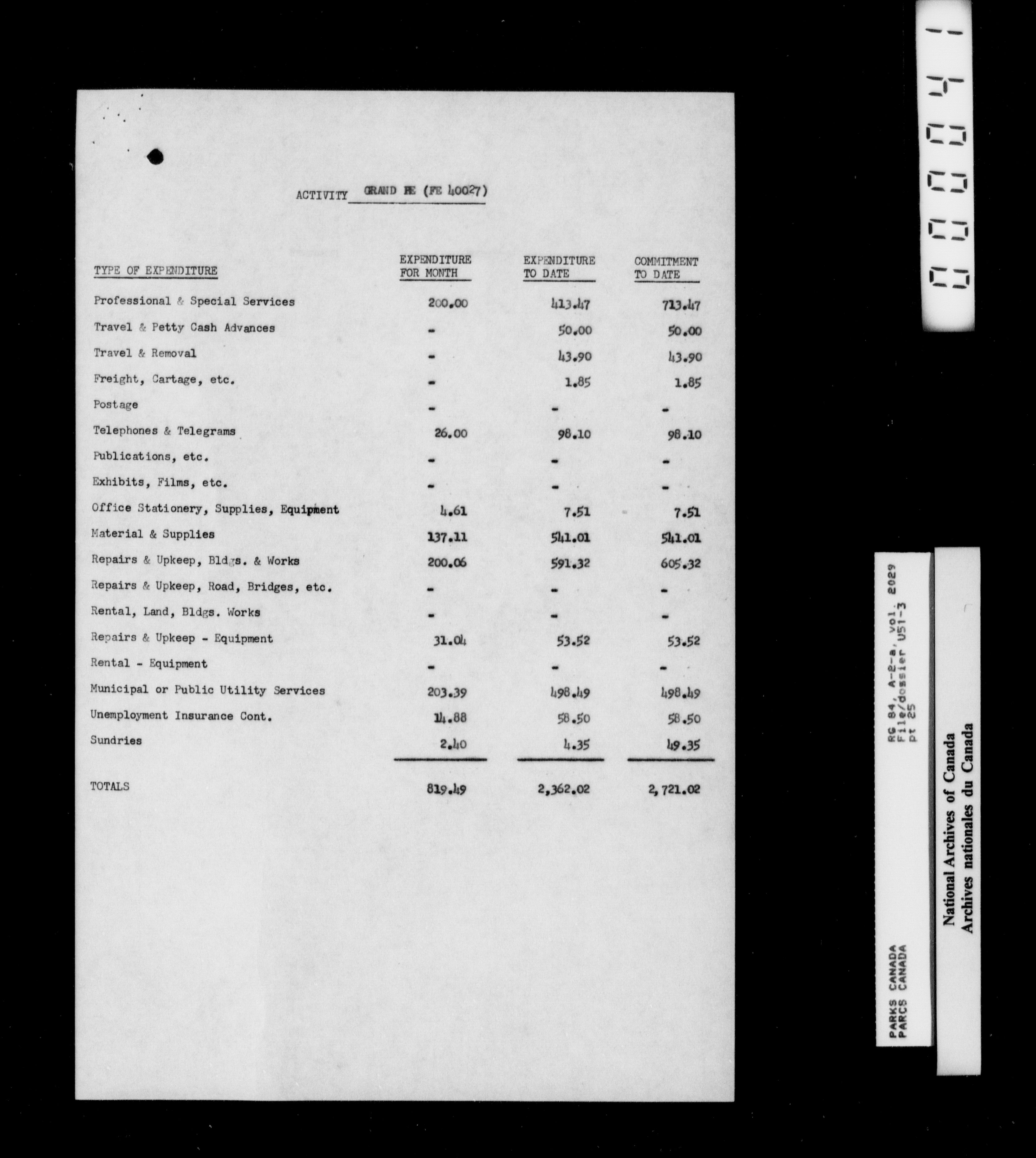 Department of Canadian Heritage, Canadian Parks Service : Park/subject classification system - 15999