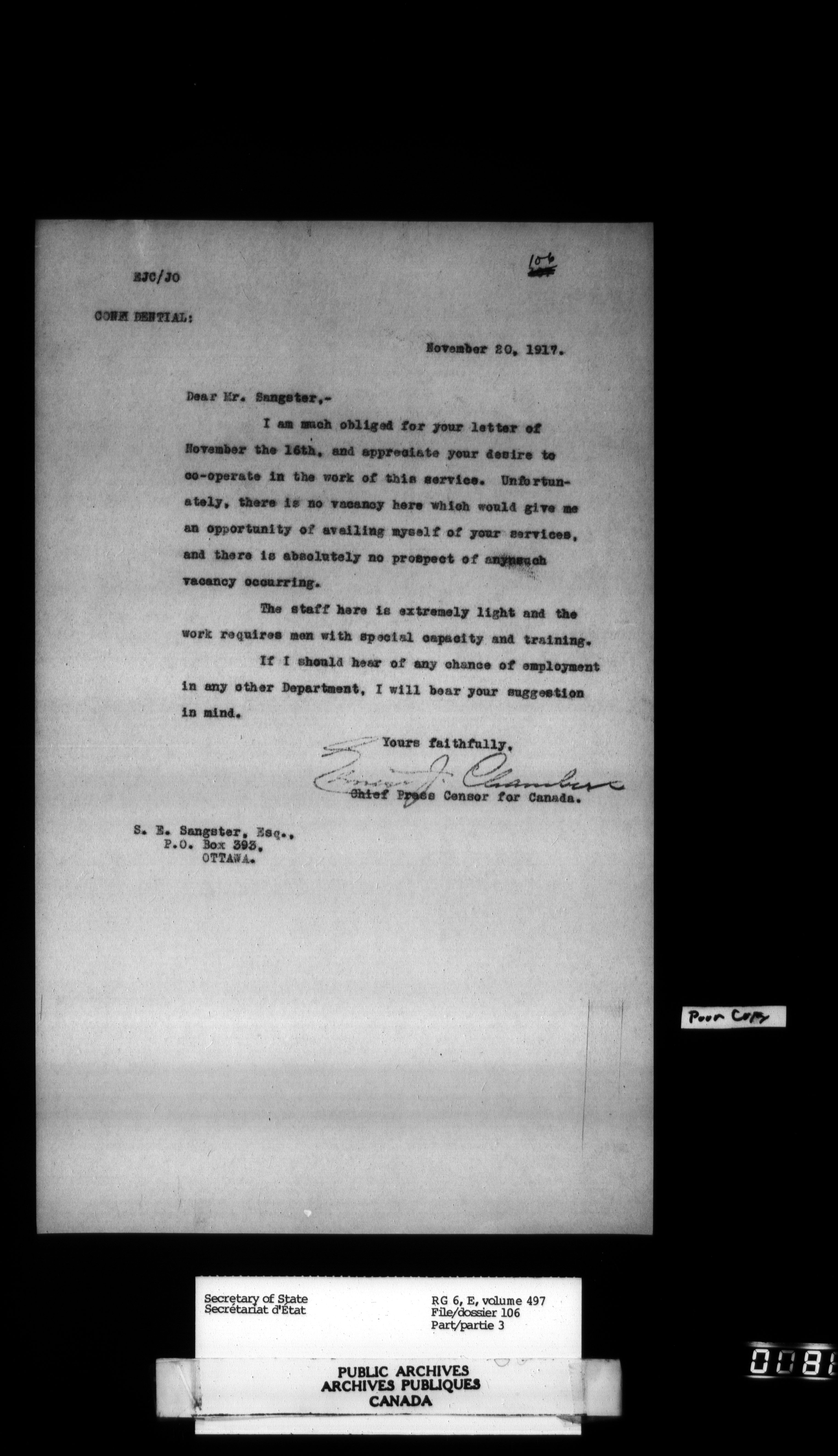 Secretary of State : Chief Press Censor : T-16