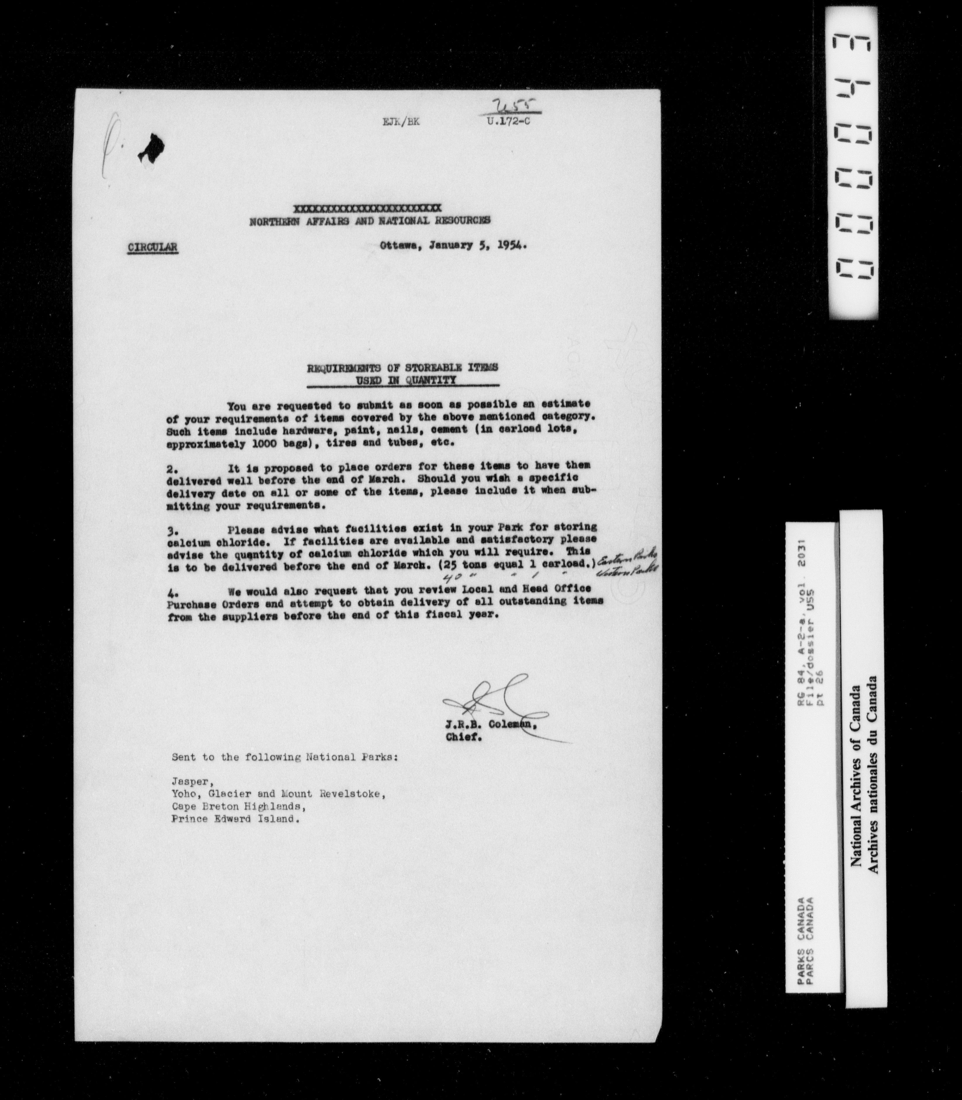 Department of Canadian Heritage, Canadian Parks Service : Park/subject classification system - 16001