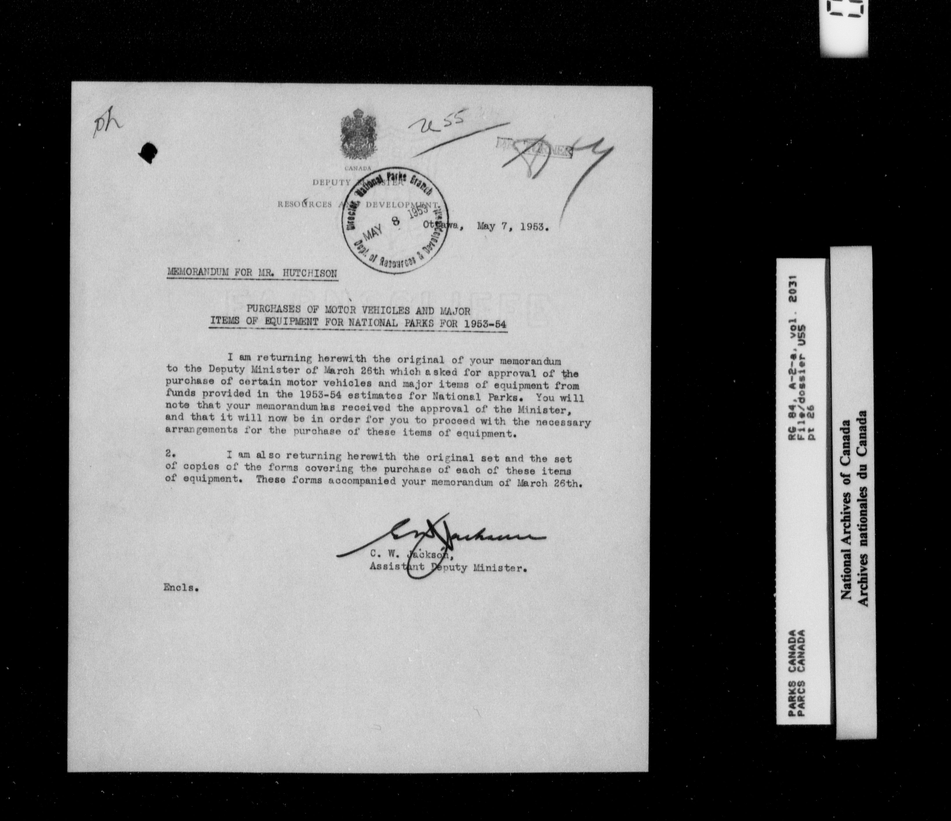 Department of Canadian Heritage, Canadian Parks Service : Park/subject classification system - 16001