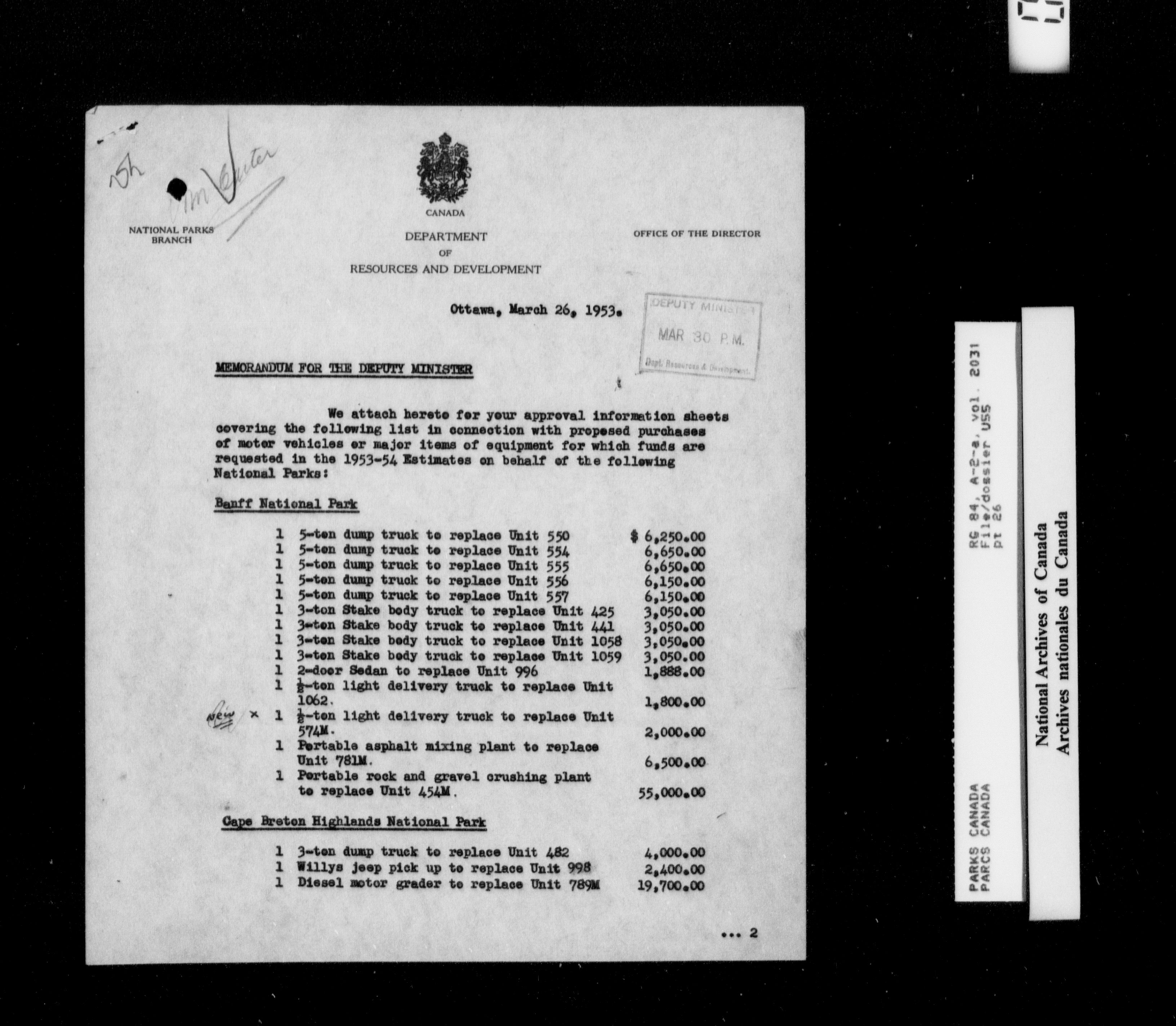 Department of Canadian Heritage, Canadian Parks Service : Park/subject classification system - 16001