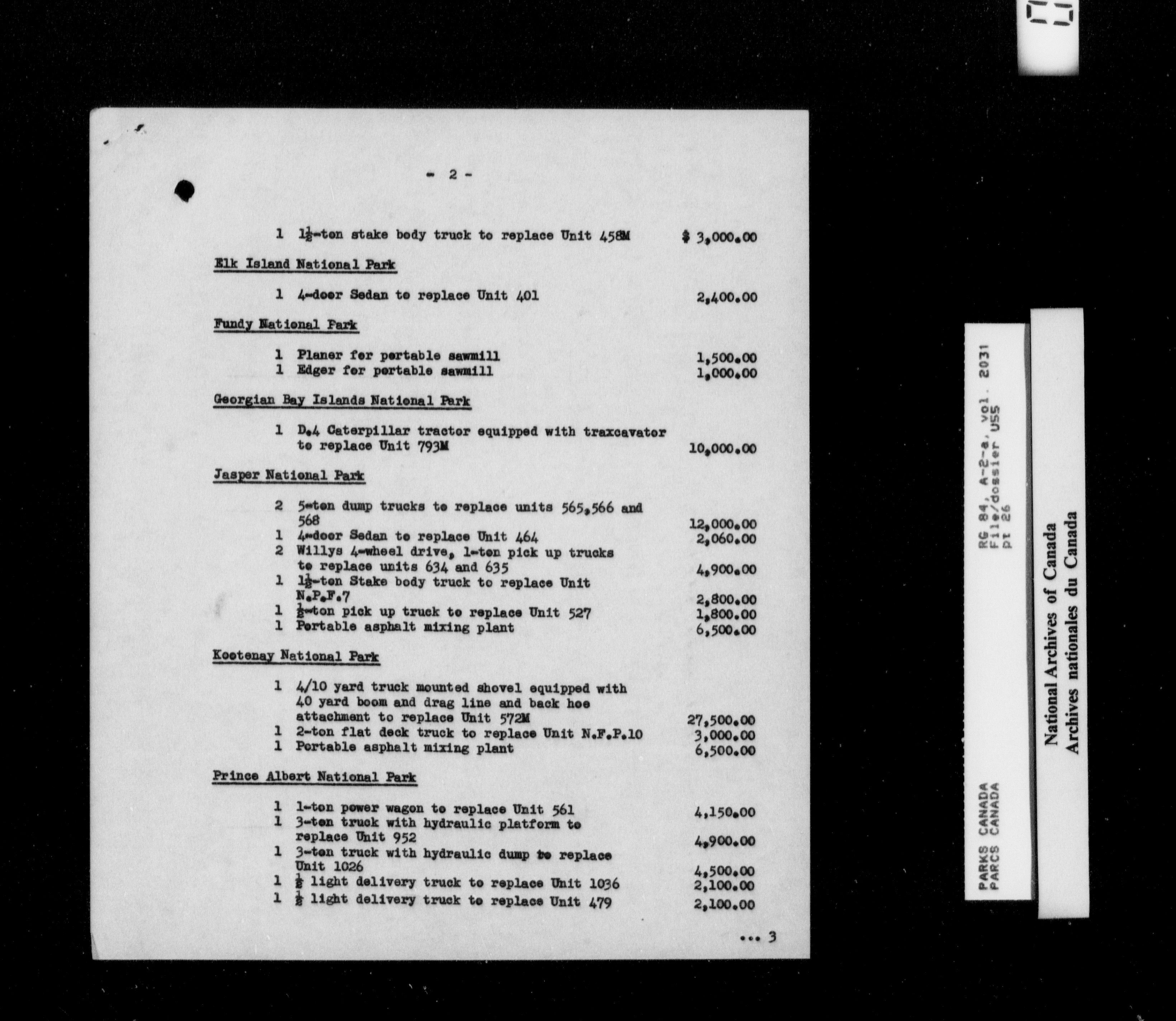 Department of Canadian Heritage, Canadian Parks Service : Park/subject classification system - 16001