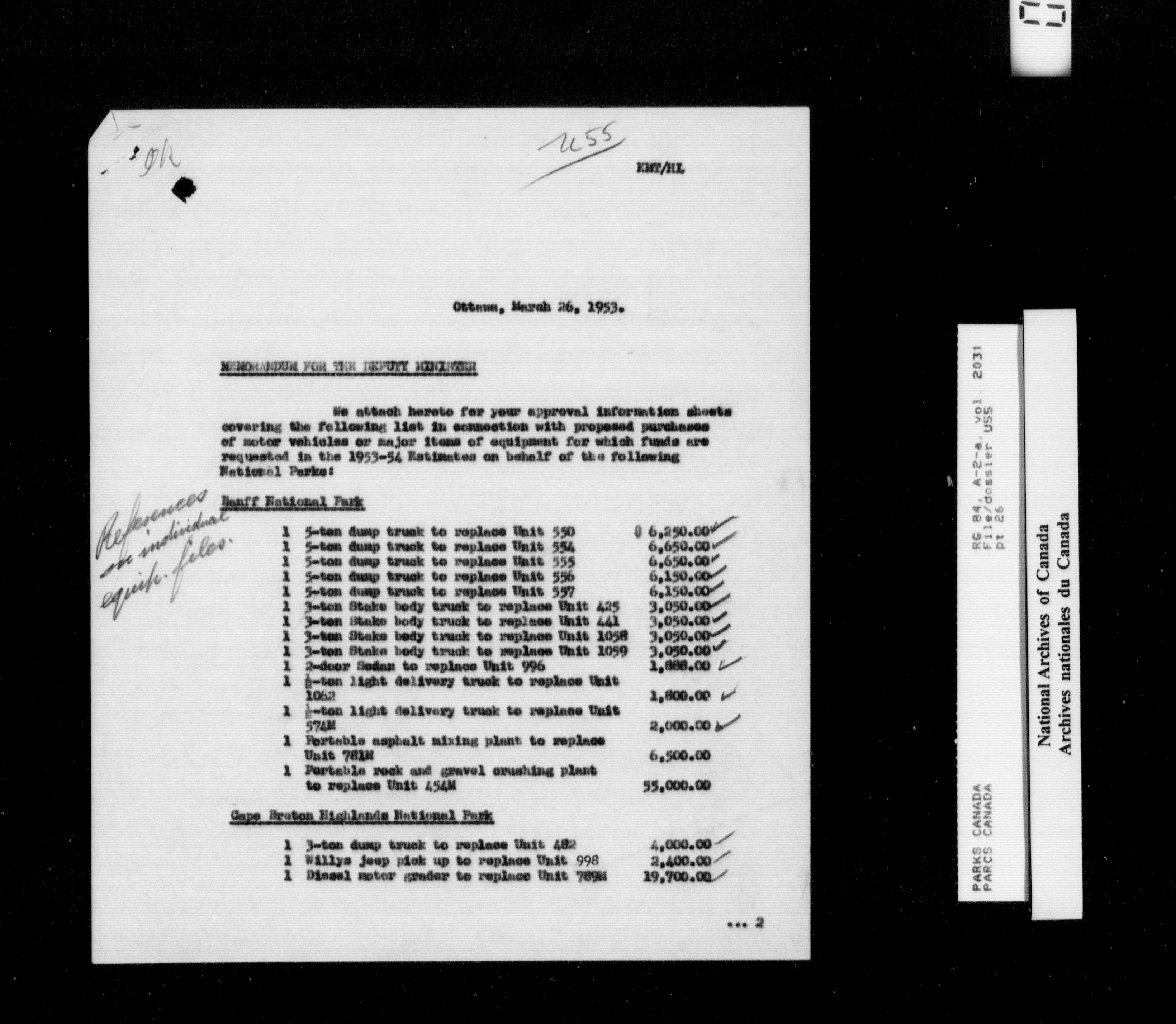 Department of Canadian Heritage, Canadian Parks Service : Park/subject classification system - 16001