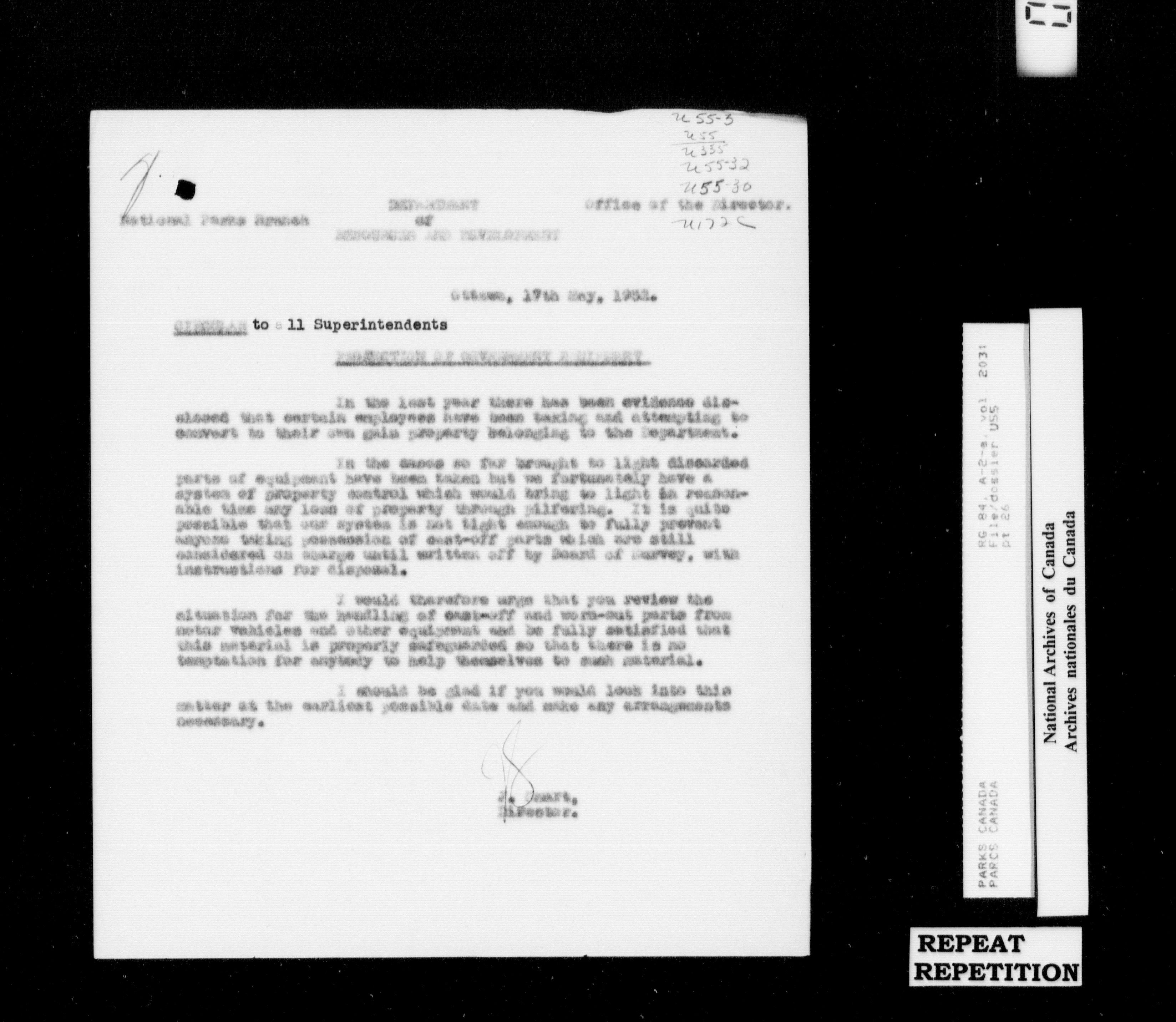 Department of Canadian Heritage, Canadian Parks Service : Park/subject classification system - 16001