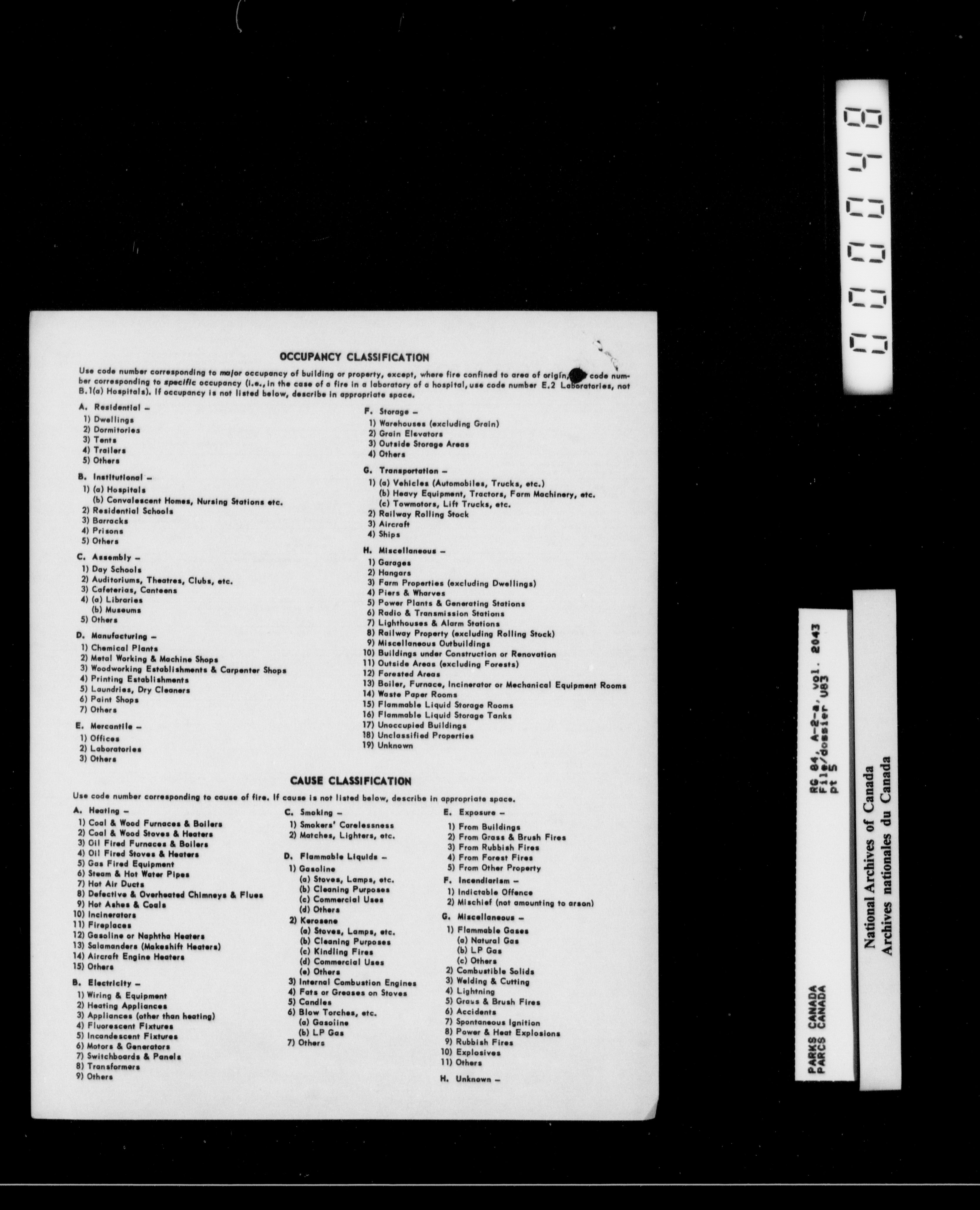 Department of Canadian Heritage, Canadian Parks Service : Park/subject classification system - 16007