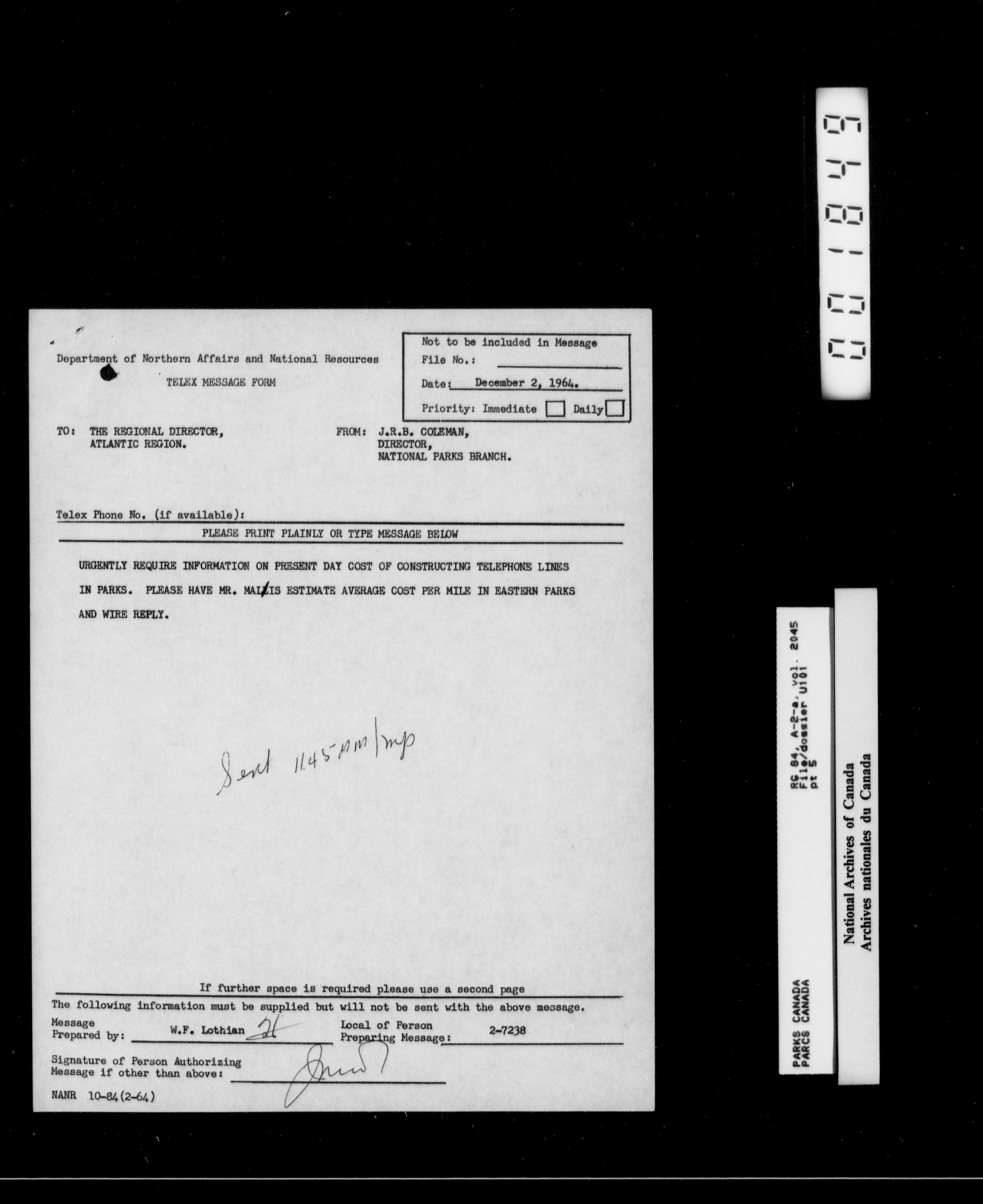 Department of Canadian Heritage, Canadian Parks Service : Park/subject classification system - 16008