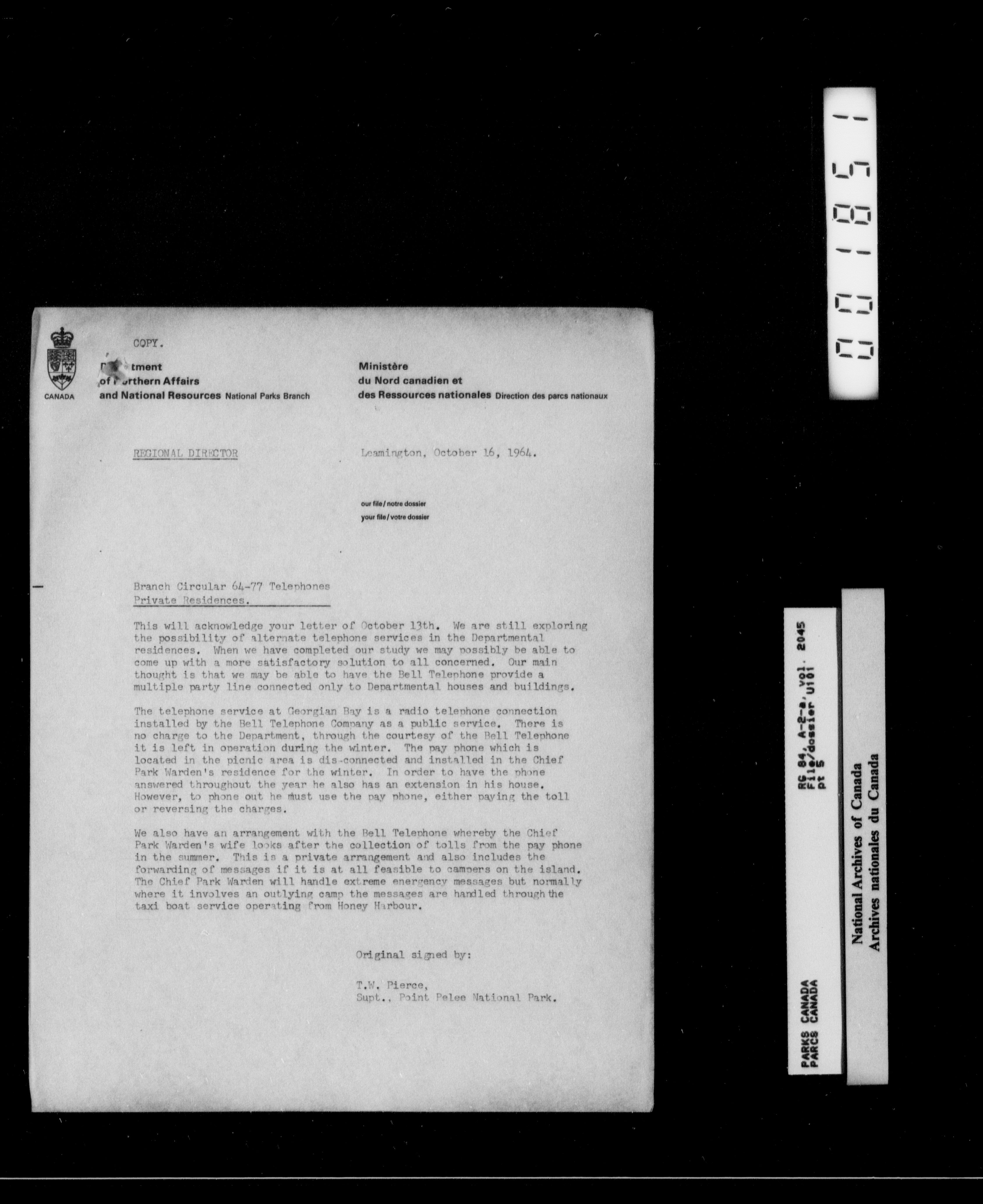 Department of Canadian Heritage, Canadian Parks Service : Park/subject classification system - 16008