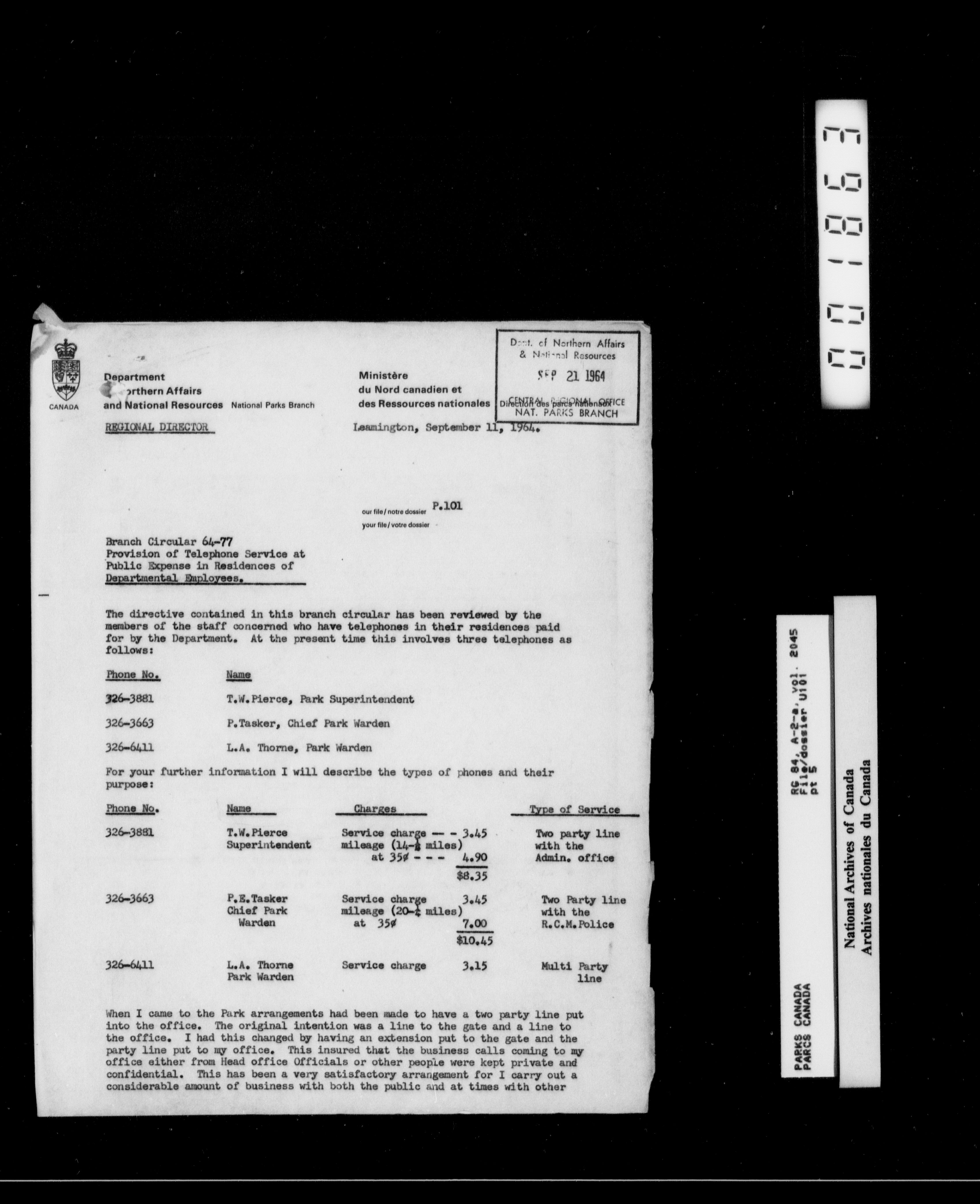 Department of Canadian Heritage, Canadian Parks Service : Park/subject classification system - 16008