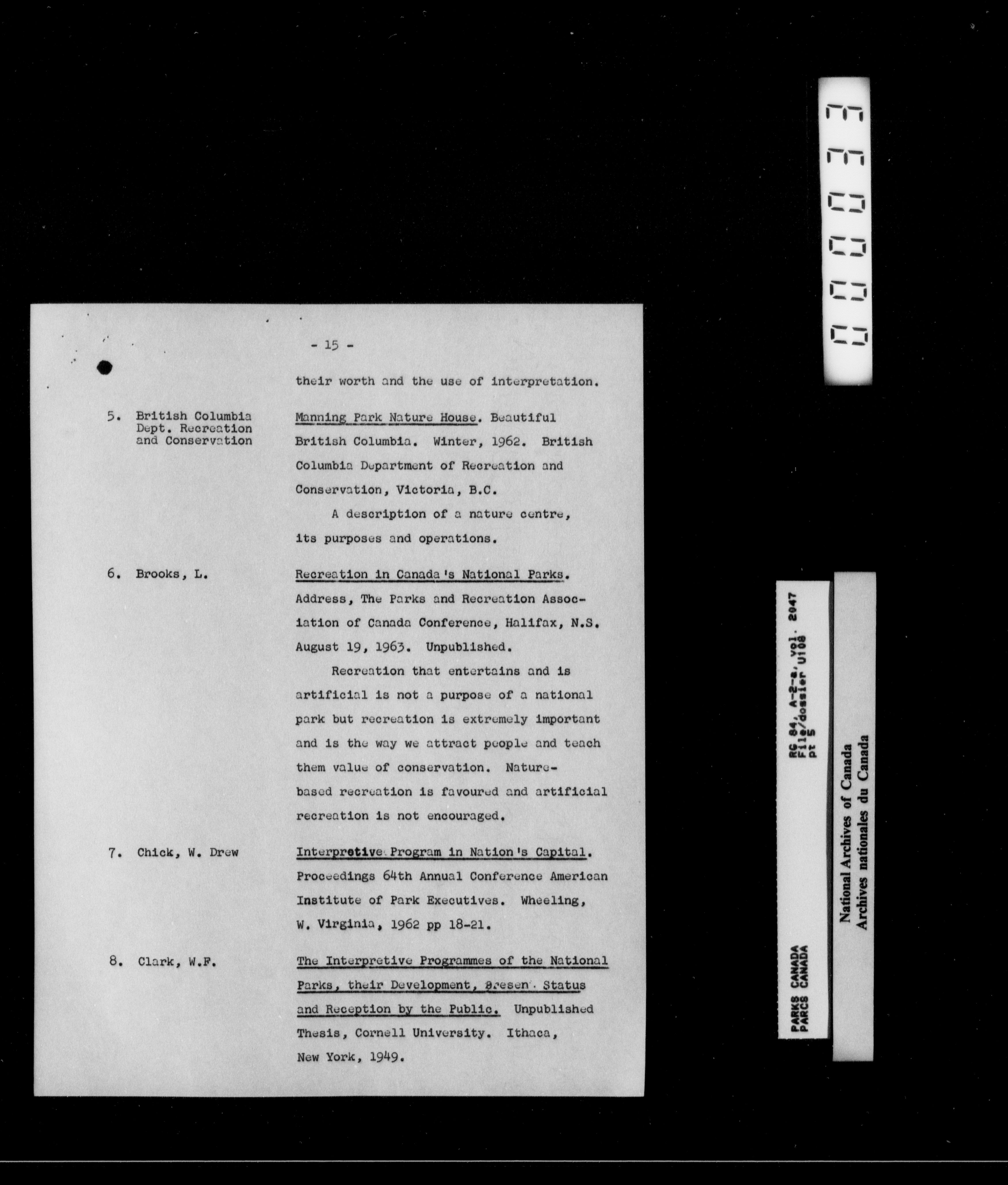 Department of Canadian Heritage, Canadian Parks Service : Park/subject classification system - 16009