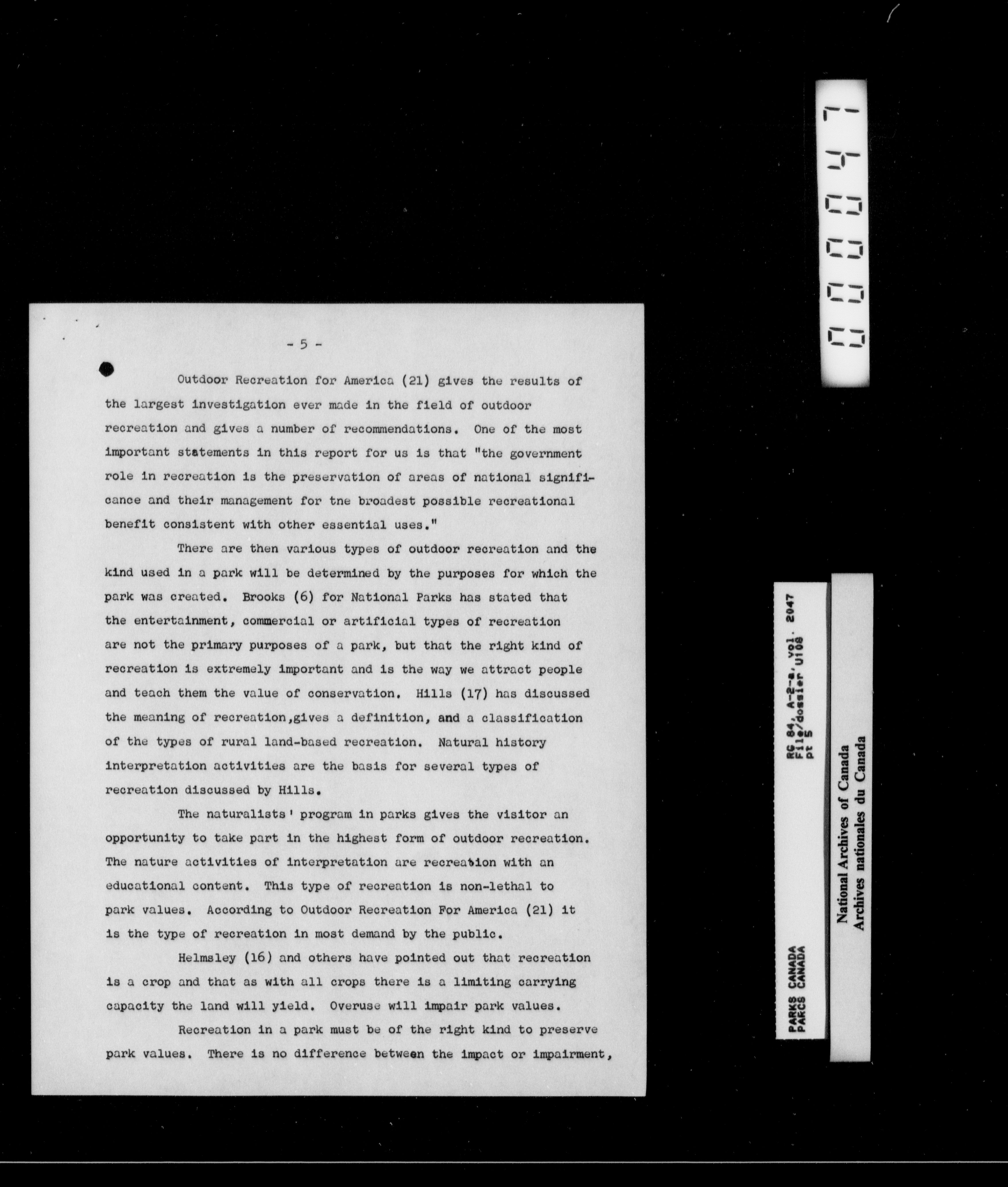 Department of Canadian Heritage, Canadian Parks Service : Park/subject classification system - 16009