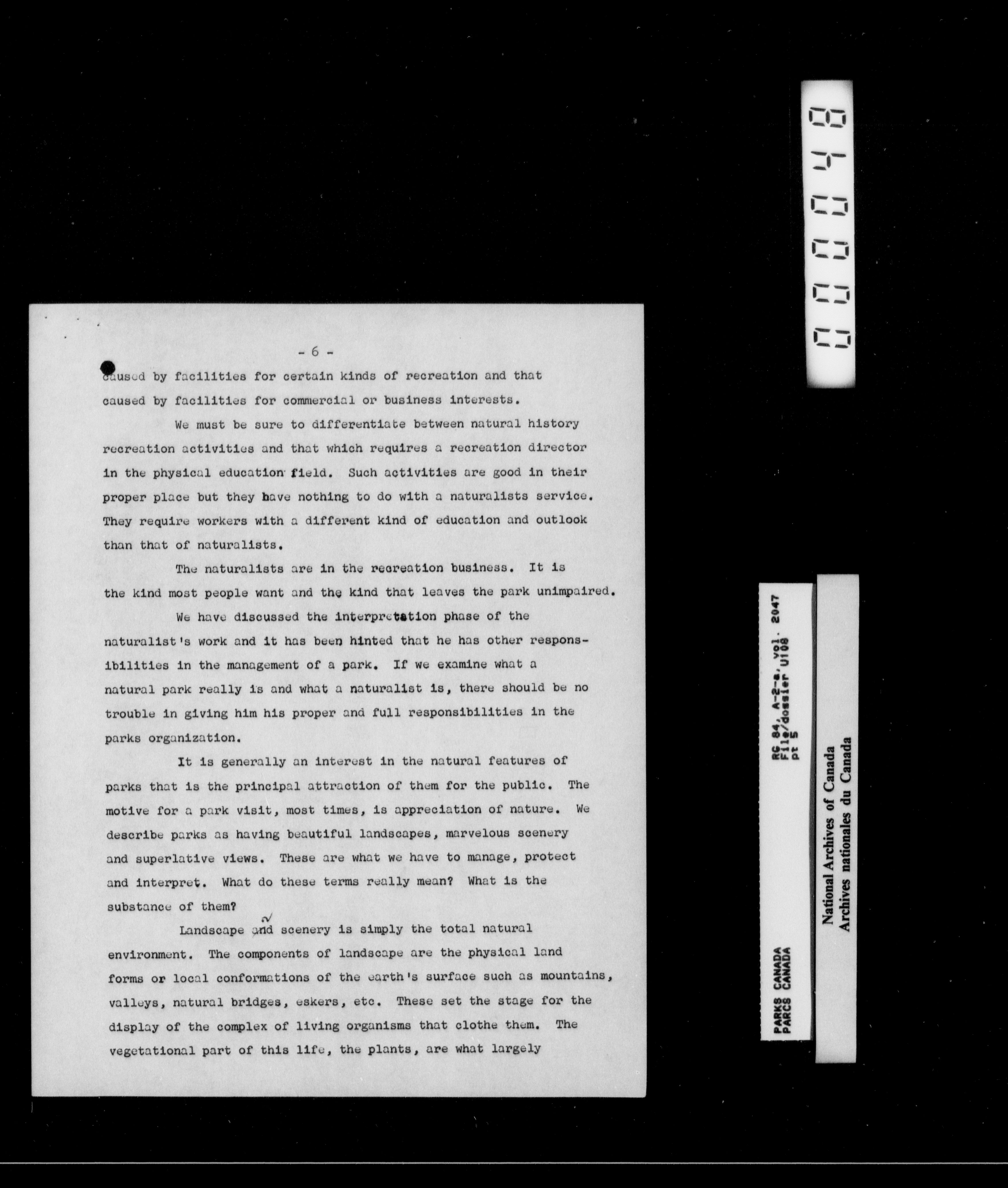 Department of Canadian Heritage, Canadian Parks Service : Park/subject classification system - 16009
