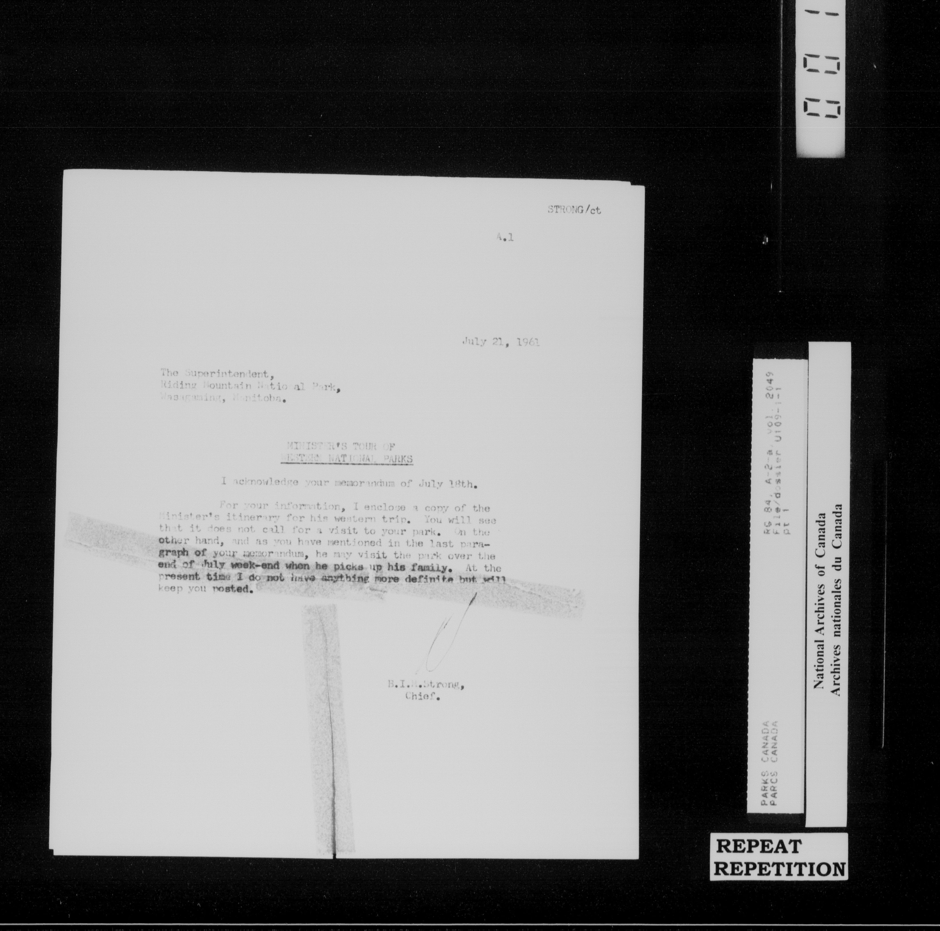 Department of Canadian Heritage, Canadian Parks Service : Park/subject classification system - 16010