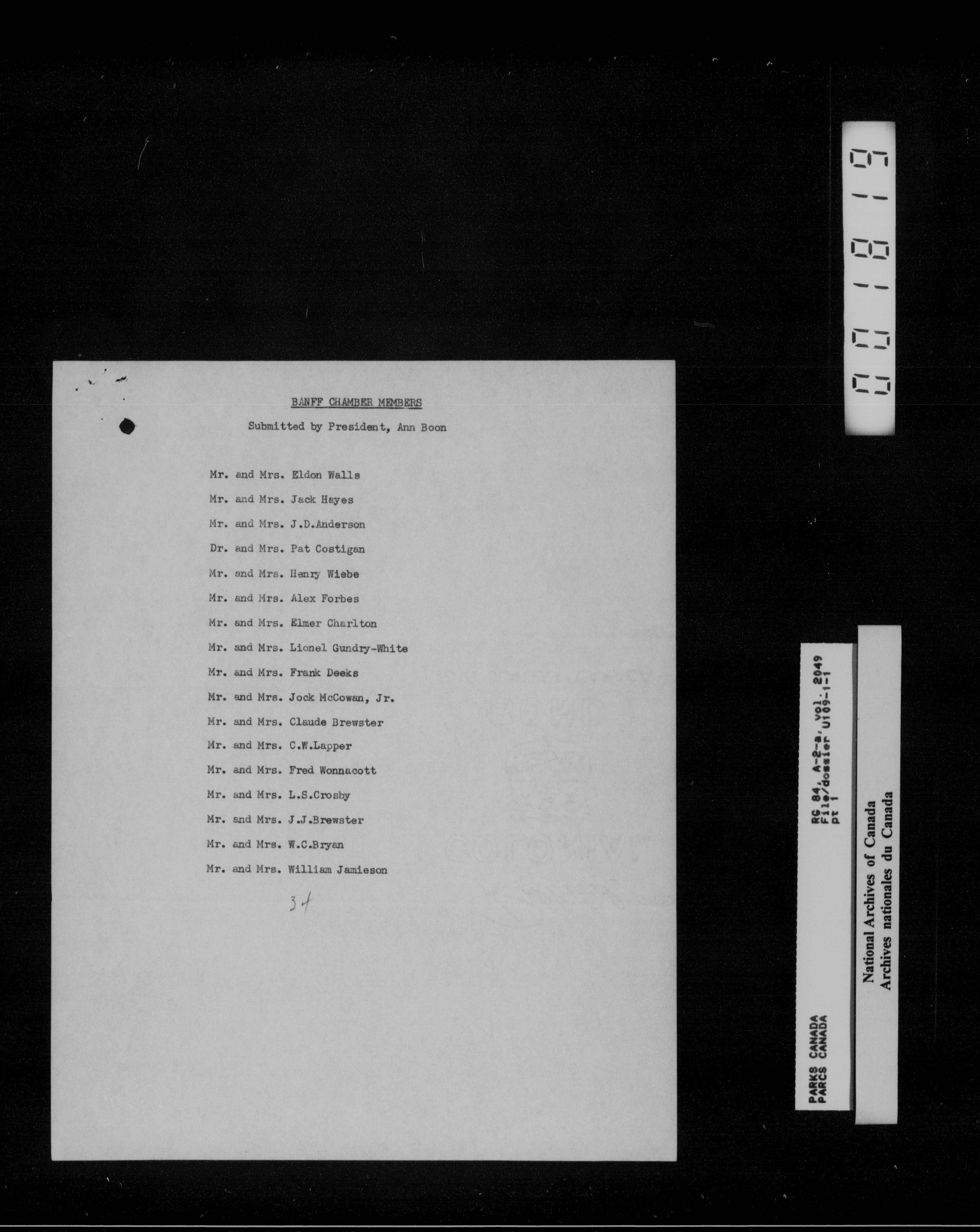 Department of Canadian Heritage, Canadian Parks Service : Park/subject classification system - 16010